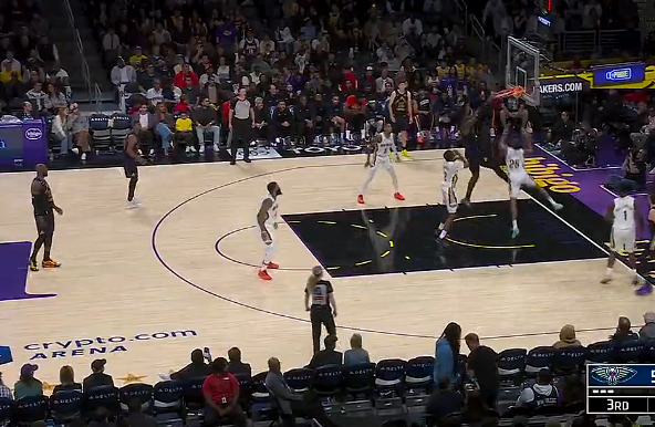 虎扑03月04日讯NBA常规赛,湖人对阵鹈鹕的比赛正在进行中。