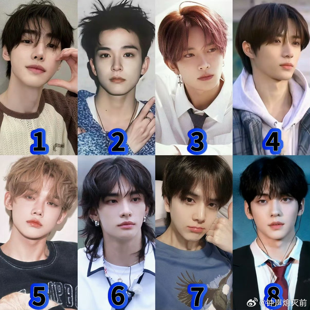韩男团五颜一候选人,都不认识,但看脸我的审美是1和8