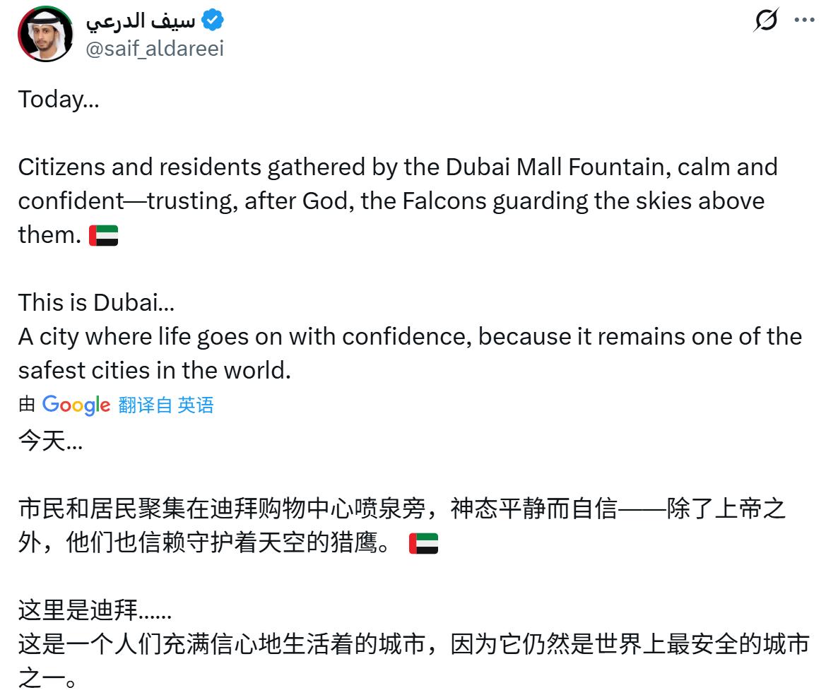 阿联酋总统再怎么逛商场, 阿联酋人再怎么聚会营造氛围, 自伊朗导弹袭来之后, 迪拜都再也回不到过去了。 安全不是能刻意营造出来的场景, 而是源自于发自内心的放松与惬意, 此时任何外在的刻意表演, 只会进一步加剧恐惧的深渊。 这一点上,资本和富人最有体会。