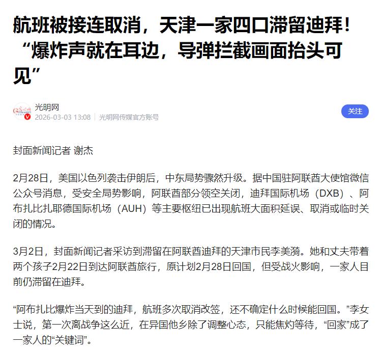 很多滞留在迪拜的中国旅客,才发现一个大乌龙! 那就是迪拜不管滞留报销费用 最近中东地区局势一紧张,可把不少去阿联酋旅游的中国旅客给坑惨了。 从2月28号开始,因为局势原因,阿联酋部分领空关了,迪拜机场好多航班要么取消、要么延误,很多人订好了返程机票,就等着回家,结果被滞留在迪拜,连啥时候能走都不知道。 更让人闹心的是,之前网上传得特别凶,说阿联酋政府会承担滞留旅客的住宿和吃饭钱,大家想着有政府兜底,心里还踏实点。 可真到了酒店续住、结账的时候才发现,压根没人给报销,所有花费都得自己掏。 就说天津的李女士一家四口,本来趁着孩子放假去迪拜旅游,原计划2月28号飞回广州,结果当天阿布扎比发生爆炸,他们在去机场的路上,就收到了航班取消的通知。 后来改了两次机票,还是不确定能不能按时飞。一开始她也信了网上的话,以为政府包食宿,没担心住宿钱,可酒店前台明确说,没接到政府报销的通知,续住必须自己花钱,一天就要上千块。 和李女士一样的旅客还有很多,拿着航班取消证明去酒店要免费续住,都被拒绝了。 还有人滞留在邮轮上,以为能有政府补贴,结果发现吃饭虽然够,但返程和额外住宿的钱,还是得自己出。其实这一切,都是因为大家误会了。 这个误会的根源,就是大家不了解阿联酋的情况。很多人以为迪拜就是阿联酋,其实不是,阿联酋是由七个酋长国组成的,每个酋长国自己说了算,联邦政府的政策,不一定每个酋长国都执行。 这次闹误会,是因为阿联酋民航总局3月1号发了声明,说政府会承担滞留旅客的食宿费。 可大家没看全,这个政策只是联邦层面的说法,具体怎么执行看各个酋长国。阿联酋首都阿布扎比就执行了,滞留旅客住酒店、吃饭都免费,只要出示航班取消证明就行。 但迪拜不一样,当地部门只要求酒店不能赶滞留旅客,保证大家有地方住,压根没说政府报销费用。 有人问,航空公司不管吗?这里说清楚,因为局势这种突发事件,不是航空公司的问题,航空公司只负责帮忙改签、退票,或者协助安排食宿,但费用得旅客自己出,没有义务承担。 不过大家也别太担心,中国驻迪拜总领馆已经行动起来,保障大家的安全,还没听说有中国公民受伤。 滞留的旅客可以通过中国领事APP登记信息,有紧急困难也能找领馆帮忙,当地华侨也在帮忙互助。 这次的乌龙,也给大家提了个醒,去国外旅游,尤其是阿联酋这种国家,出发前多了解当地情况,别轻信网上的消息。 遇到急事,先看中国领馆的提醒,避免花冤枉钱。目前迪拜航班在慢慢恢复,希望滞留的旅客都能顺利回家,以后出门也能多留心。