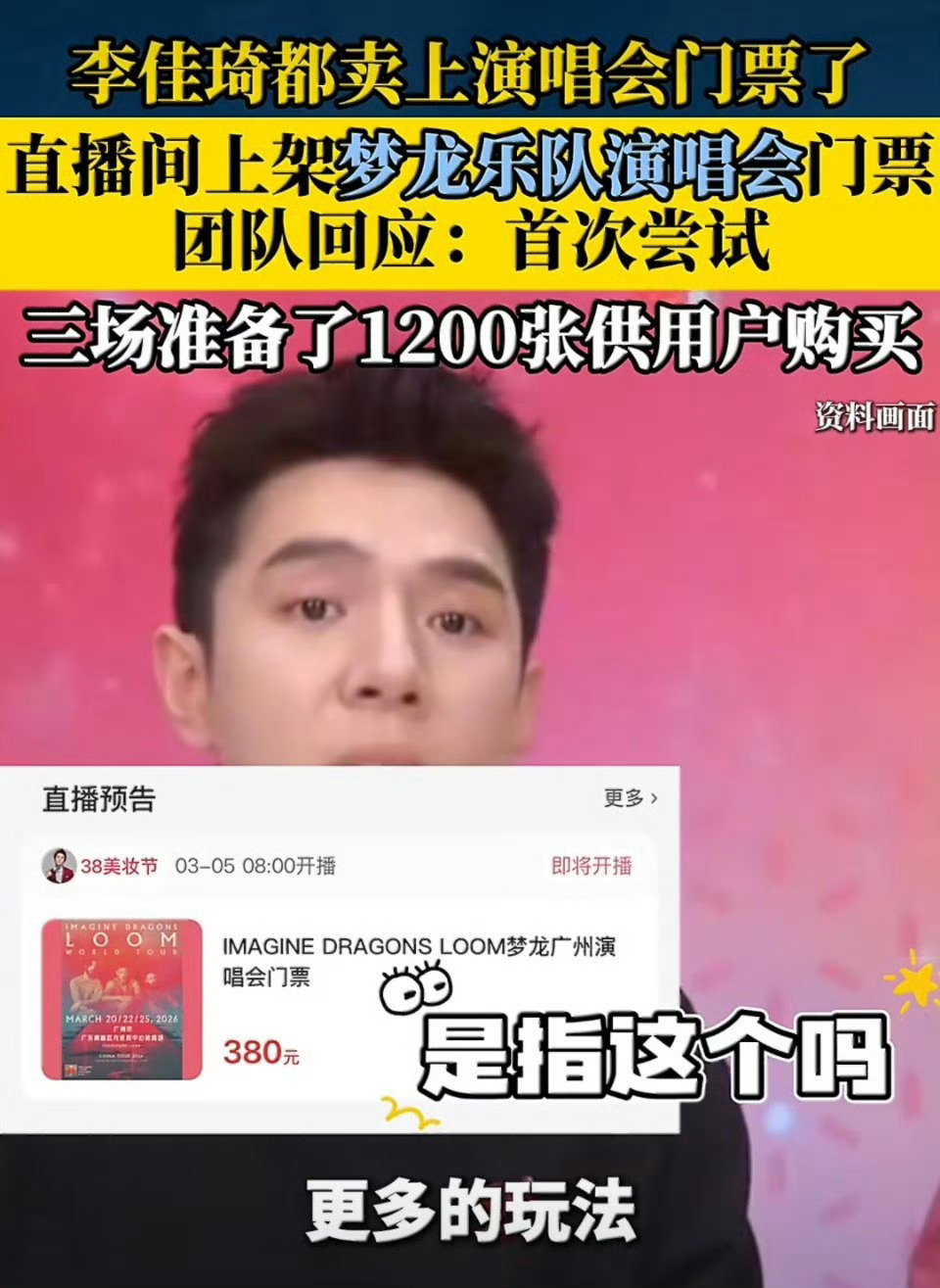 团队回应李佳琦直播间上架梦龙演唱会门票李佳琦你是懂我们想要什么的!不愧是所有女生的神,竟然会上梦龙乐队的门票🎫,就知道你和我们是真玩!期待期待