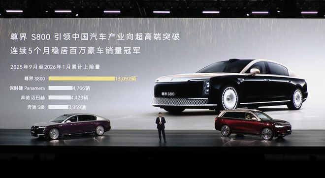 尊界S800上市后已经实现1.5万辆的交付,连续5个月成为百万豪车的销量冠军,同期销量超过了保时捷帕拉梅拉、奔驰迈巴赫和S级的销量之和。