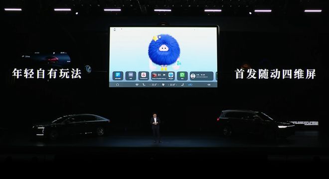 新车将会首发随动四维屏,中控屏幕可以自由转动,乘客无论在哪个角度呼唤语音助手,屏幕都会转向呼喊者的方向。