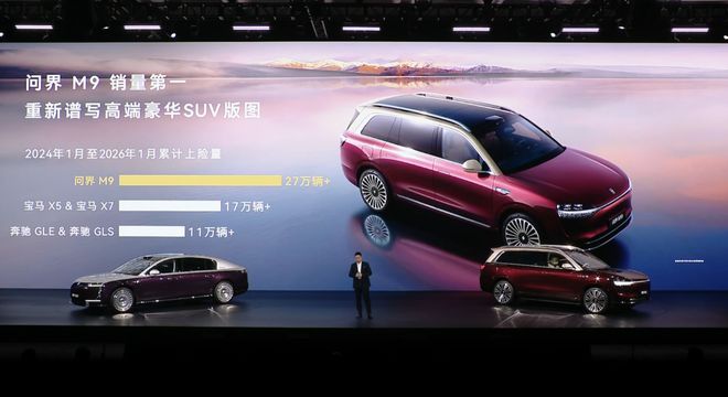 问界M9上市后已经交付了28万辆,同期销量超过了宝马X5/X7,奔驰GLE/GLS四款车的销量总和。