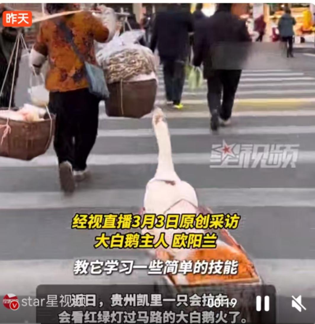 近日,贵州凯里的街头出现了一番奇景,一只大白鹅火了。它不是在水里游,也不是在锅里炖,而是套着小车,紧跟主人步伐,甚至还会看红绿灯过马路。这画面被路人拍下传到网上,瞬间引爆了热议,不少网友直呼这鹅“太有灵性”,简直成了精。 这事儿发生在贵州凯里,时间就是最近。视频里,这只大白鹅体态丰腴,精神抖擞,拉着一辆特制的小车,里面坐着主人卖的菜。最让人称奇的不仅是它会拉车,而是它过马路时的表现。到了斑马线前,这鹅似乎懂规矩,居然知道看红绿灯,绿灯亮了才跟着人群大摇大摆地走过去。这哪里是家禽,分明就是个“懂事”的小跟班。 这一幕让围观群众看得津津有味,也引发了网友们的无限遐想。评论区里,一位来自福建的网友“布古尔泰3e”的一句调侃获得了165个点赞,他说:“鹅:兄弟们要不是我开窍,早就在铁锅里了。”这话虽然带着玩笑味,却也道出了一个残酷又真实的道理:在农家,家禽的命运多半是上餐桌,但这只鹅凭“实力”改变了命运。它用“才艺”换取了生存权,这不仅是动物的灵性,更是一种生存智慧。 其实,这并不是第一次有“成精”的家禽走进大众视野。红星新闻等媒体也曾报道过类似的事件,有大白鹅不仅会跟着主人卖菜,甚至还能守摊收款。这说明,鹅这种生物,其实被我们低估了。北京网友“森林里的栗子叁”就指出,大白鹅其实挺适合当宠物的,不仅看家护院是一把好手,而且寿命很长。这点确实不假,在农村,鹅往往扮演着“警卫”的角色,警惕性高,攻击力强,比起有些宠物狗来看家,有过之而无不及。 不过,看着这只凯里的网红鹅,湖北网友“丹JHJH”的一番话或许道出了很多城市人的心声,他感叹道:“我也好想到县城或农村去居住,种些菜,养点宠物鸡,鸭,鹅,狗,有个两层的小洋楼。”这条评论获得了29个赞,折射出的是现代都市人对田园牧歌生活的向往。我们羡慕的不仅仅是这只鹅的聪明,更是这种人与动物和谐共处、慢节奏的生活方式。 从科学的角度来看,鹅确实具有较高的智商和良好的记忆力,通过条件反射训练,完全可以掌握过马路、拉车等技能。但要把一只鹅养成“亲人”,离不开主人日复一日的悉心照料和陪伴。这只凯里的网红鹅,之所以能在大街上如此淡定,背后是主人对它倾注的心血。人与动物之间的这种默契,不是一朝一夕形成的,而是在长期的互动中建立起来的信任。 这只大白鹅的走红,给我们带来的不仅仅是茶余饭后的谈资,更多的是一种温情。它打破了我们对家禽的刻板印象,让我们看到,只要给予关爱和耐心,万物皆有灵性。在这个快节奏的时代,偶尔停下脚步,看看这些可爱的生灵,也是一种难得的治愈。当然,对于这只鹅来说,它可能不懂什么是网红,它只知道紧紧跟着主人,这就是它全部的世界。 以上内容仅供参考和借鉴