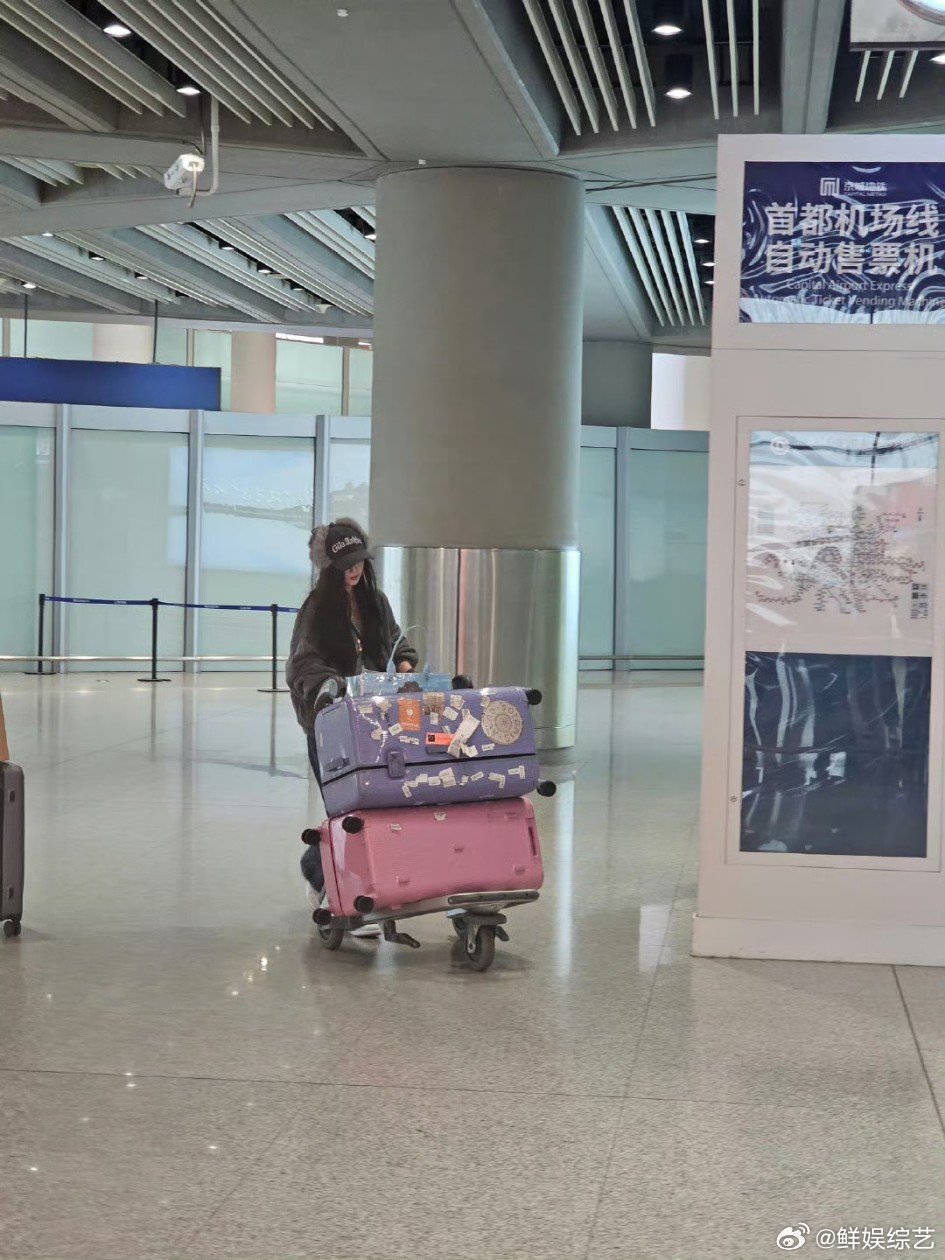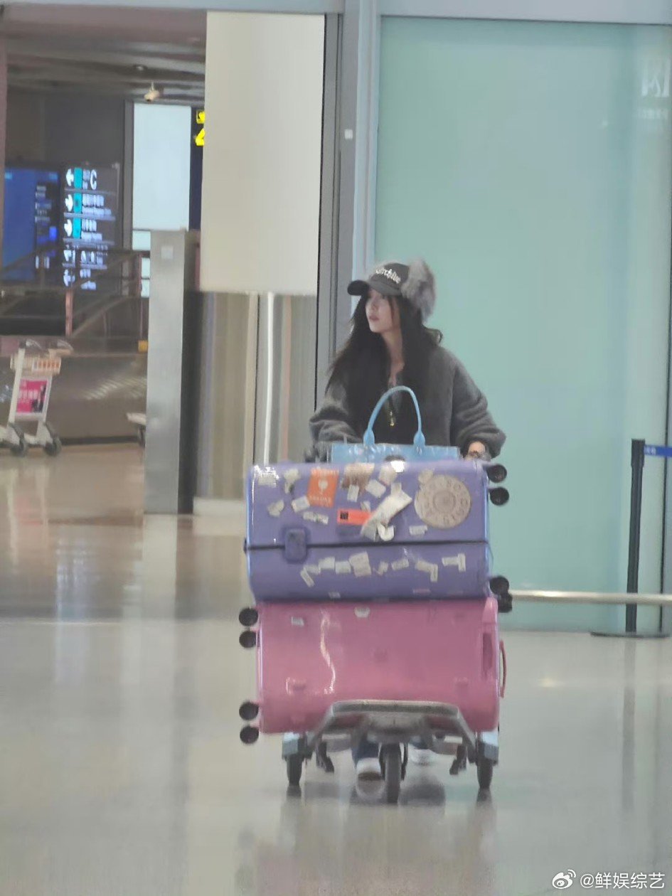 吴宣仪一个人推着行李箱,没有助理,只有司机…吴宣仪一个人推行李箱吴宣仪机场只有司