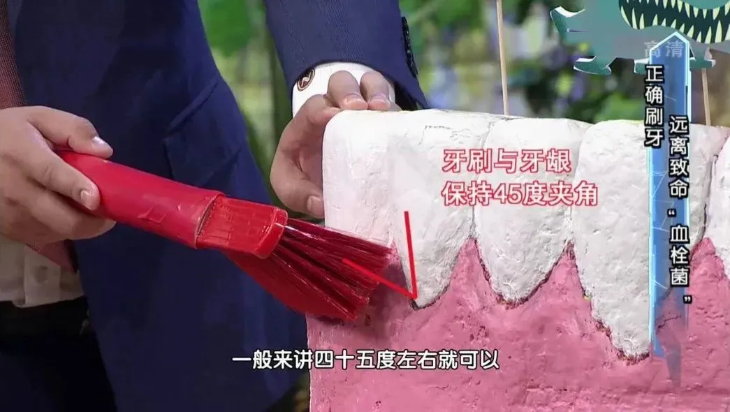 巴氏刷牙法,简单来说就是让刷毛和牙齿呈45度角,用画小圆圈的方式小幅度震颤着刷,能将隐匿的菌斑“震”出来。尤其要重视对牙齿、牙龈交界处的清洁,这里是牙菌斑堆积的“重灾区”。