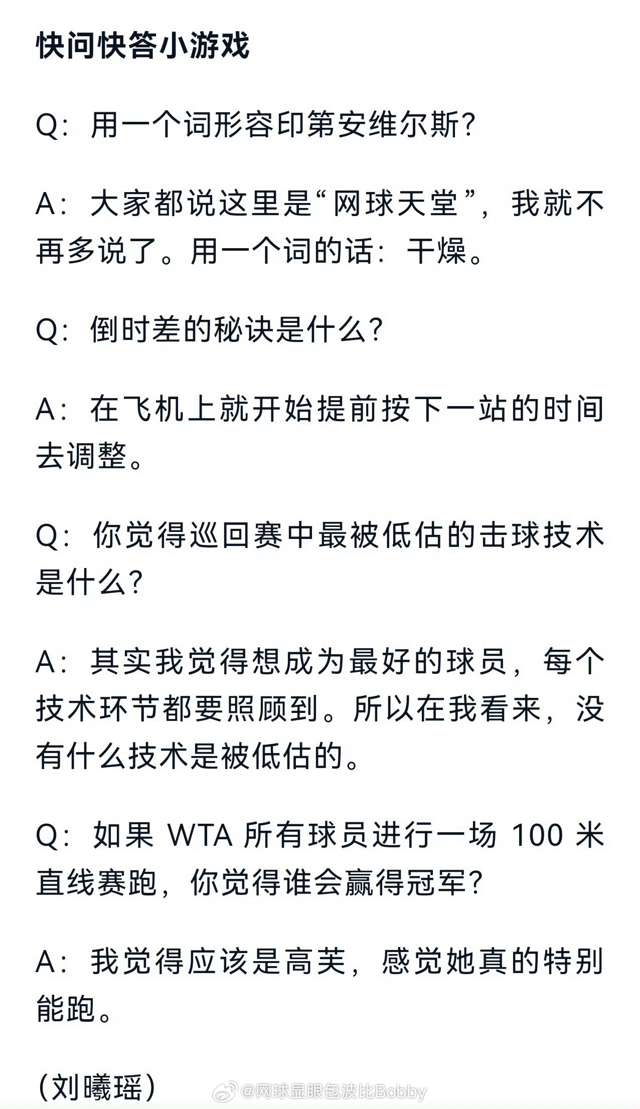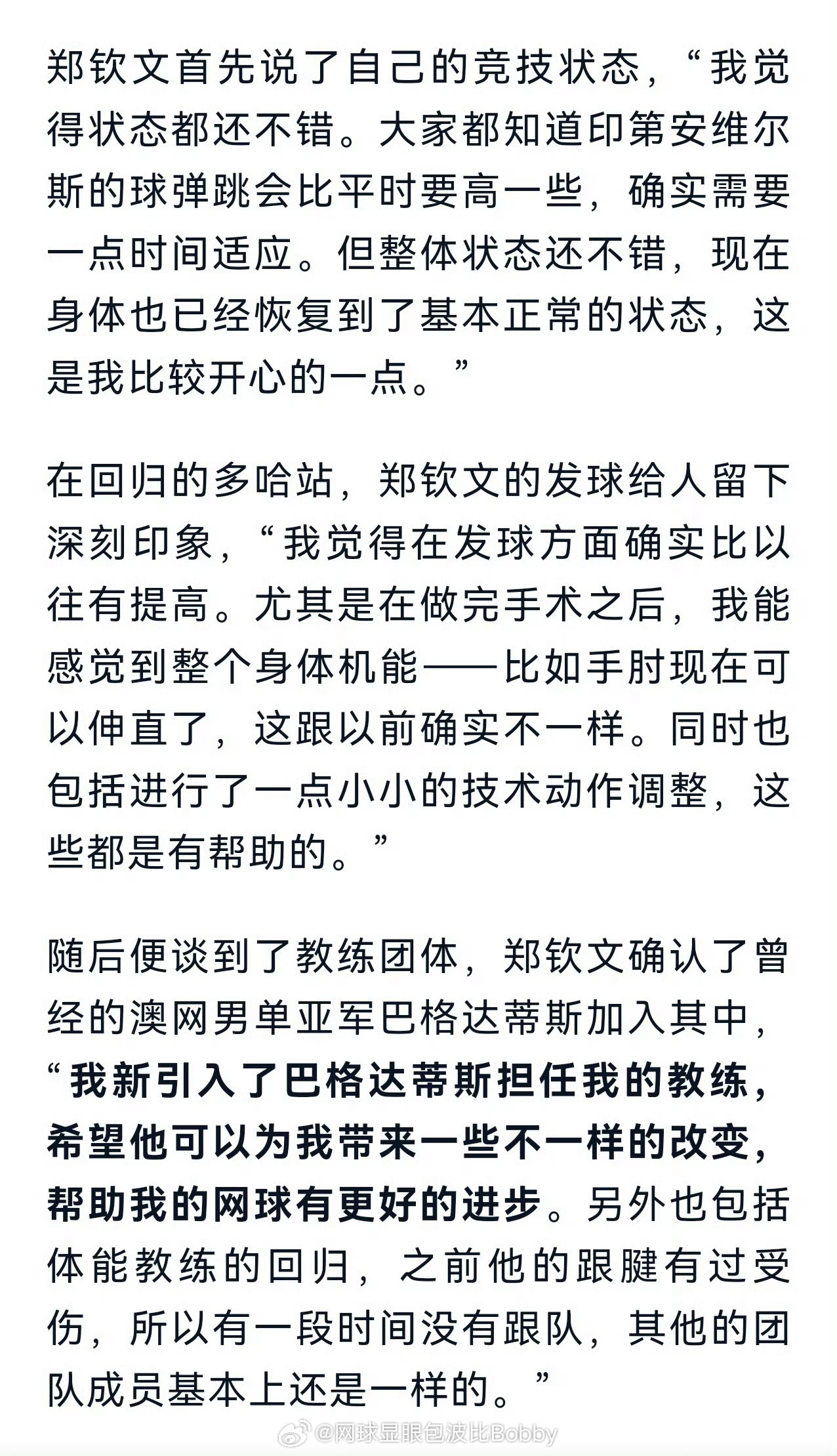 “我新引入了巴格达蒂斯担任我的教练,希望他可以为我带来一些不一样的改变,帮助我的网球有更好的进步。”网球wta