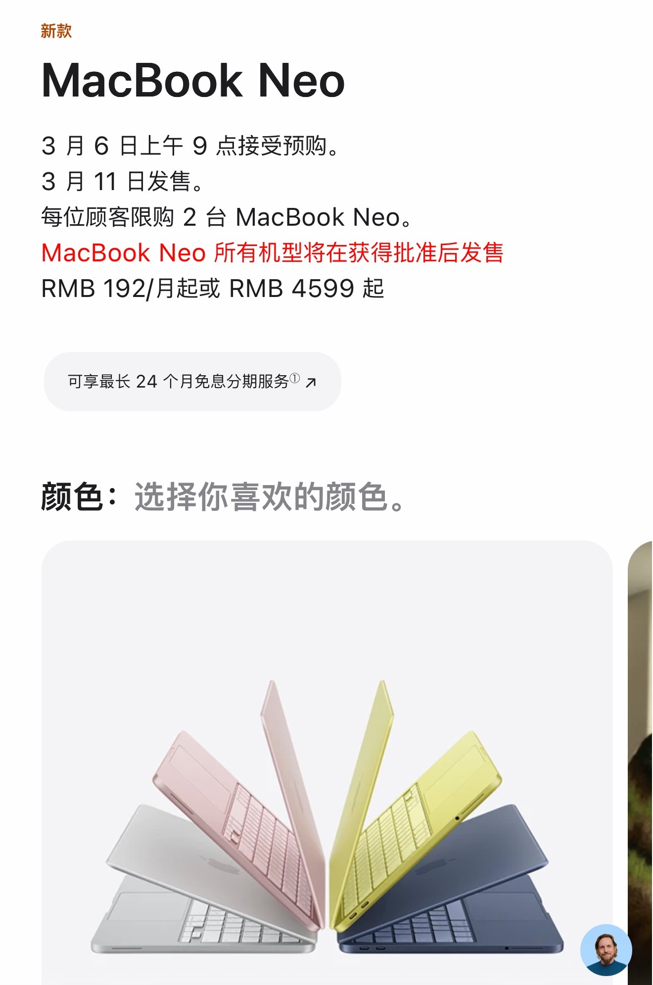 MacBook Neo把A18 Pro芯片塞进轻薄本,续航拉到16小时,屏幕升级为无刘海Liquid视网膜,多彩金属机身也同步上新。入门价4599元,这波升级大家觉得能打吗?MacBookNeo定价4599元起MacBook Neo
