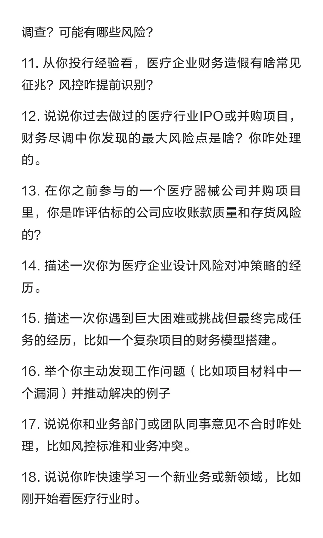 12. 说说你过去做过的医疗行业IPO或并购项目,财务尽调中你发现的最大风险点是啥?你咋处理的。
