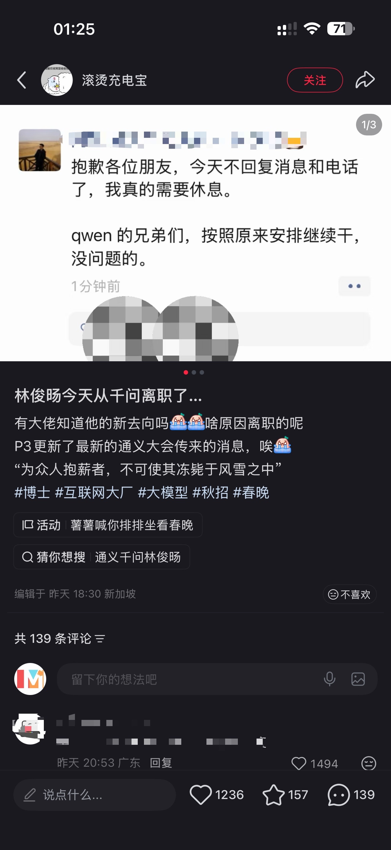 林俊旸离职有反转深夜互联网大瓜更新!林俊旸离职这事根本没那么简单,风向突然就变了