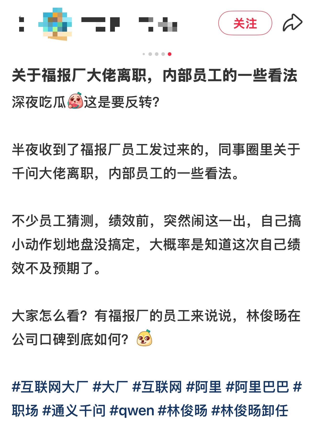 林俊旸离职有反转比起非黑即白的八卦,这场离职更值得我们看清的,是职场里永恒的核心命题:才华和适配性,到底哪个更重要。