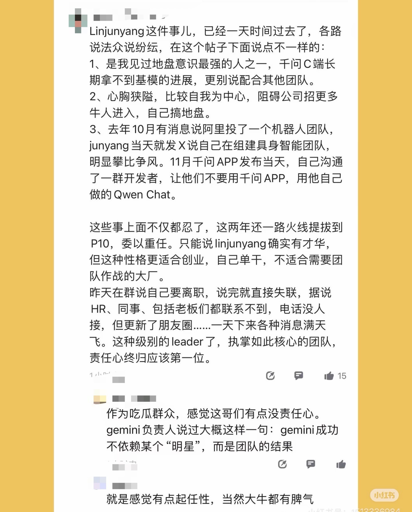 阿里一路给他火线提拔到P10,把大模型核心团队交到他手里。可到了离职的时候,只在群里留了一句话就彻底失联,HR、同事甚至管理层都联系不上人,转头却更新了朋友圈…只能说技术才华是真的,但不适合大厂的团队协作、扛不起核心岗位的责任,也是真的!