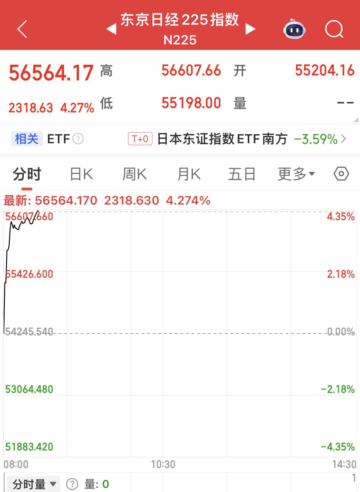 早盘韩国股市大涨超12%! 早盘日经指数上涨超4 %! 昨晚欧美股市全线上