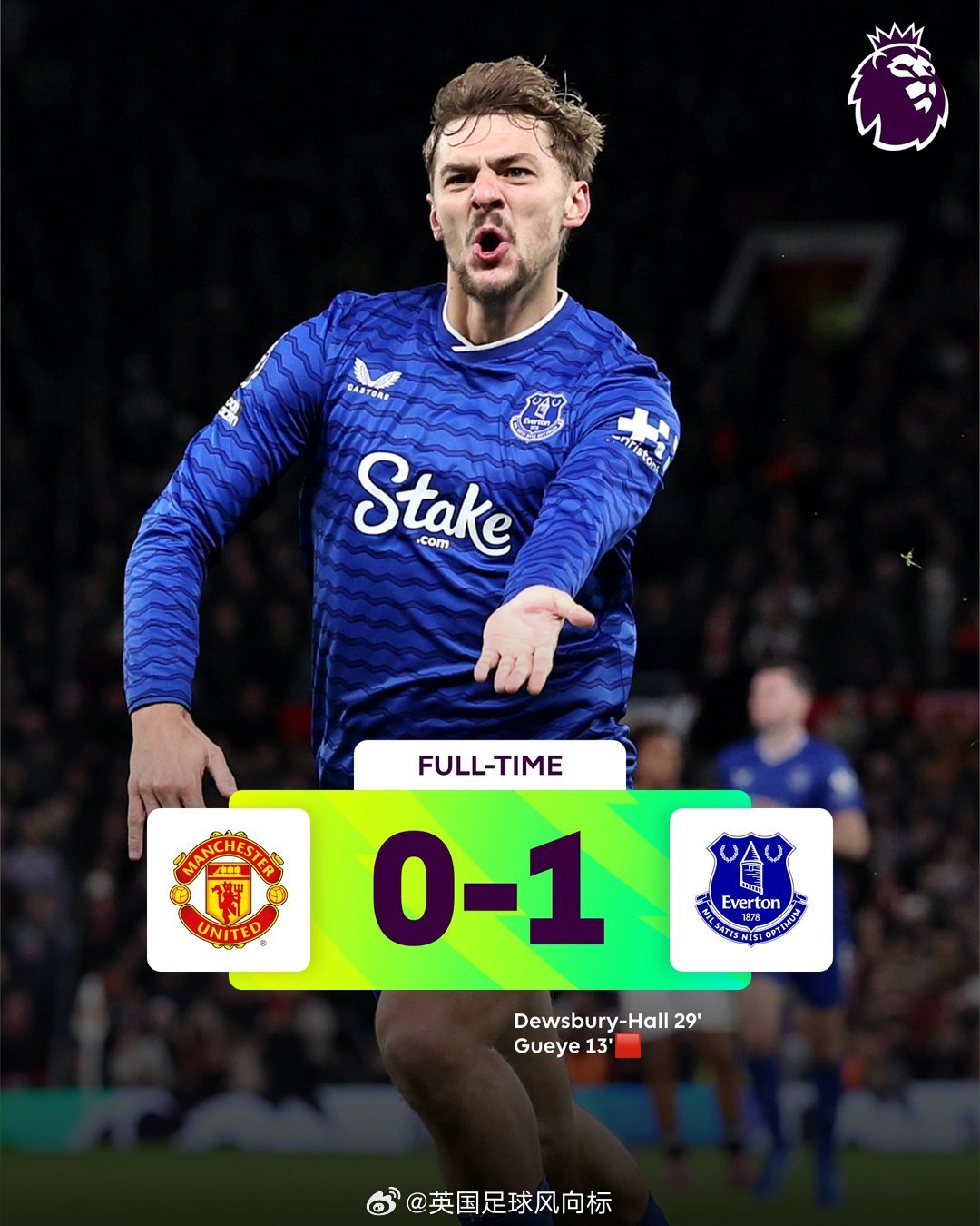 11月24日,格伊上半时红牌,曼联主场0比1不敌埃弗顿,主帅是阿莫林