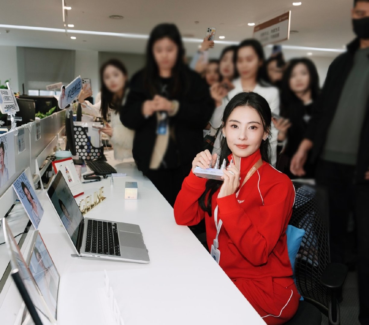 办公室被张柏芝美貌暴击 张柏芝扫楼名场面实锤!领工牌的样子又认真又可爱~ 发礼包