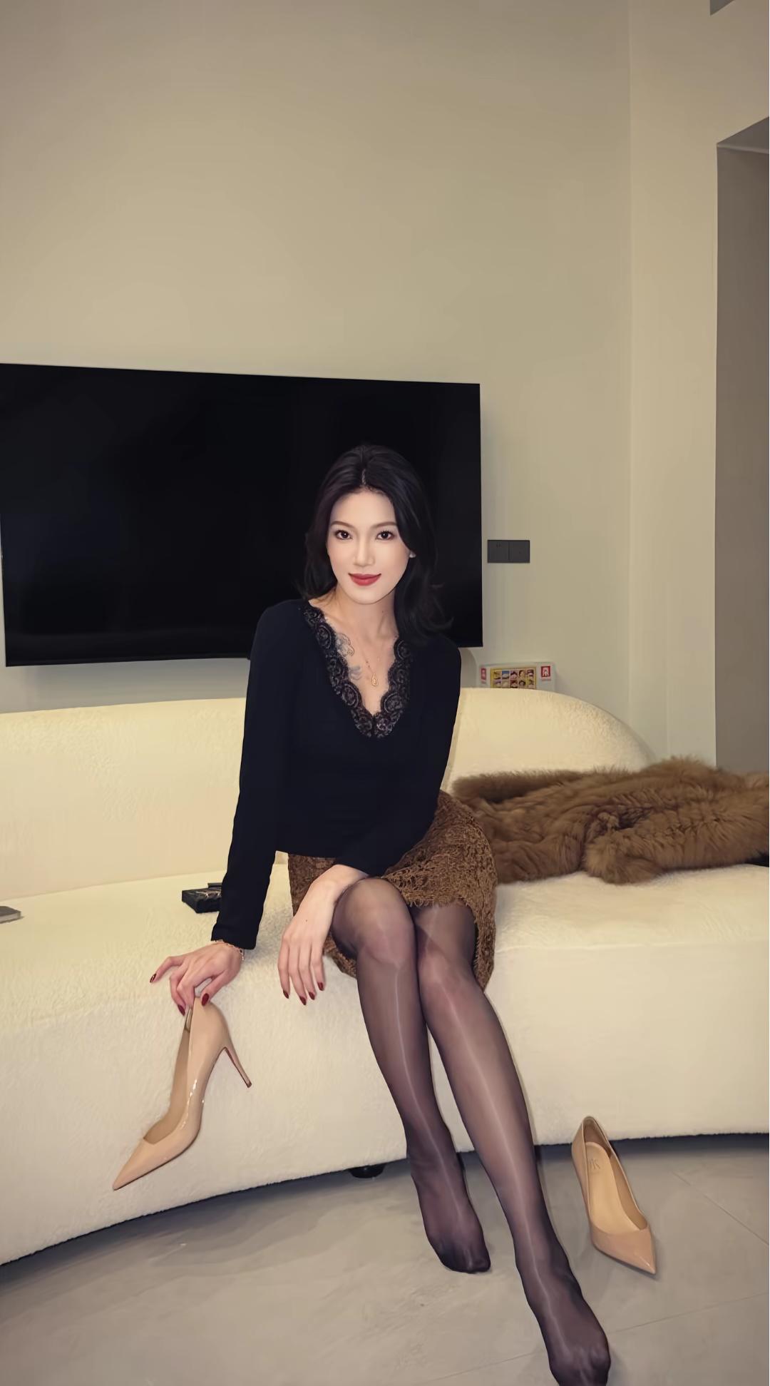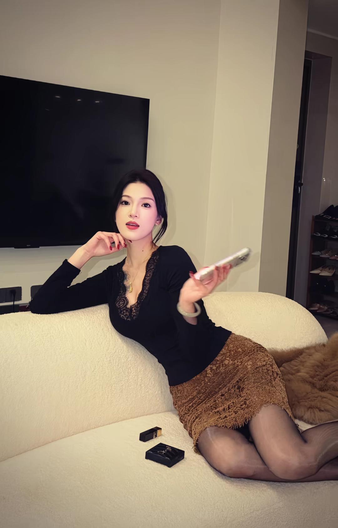 慵懒午后,黑发红唇,时尚穿搭,享受生活