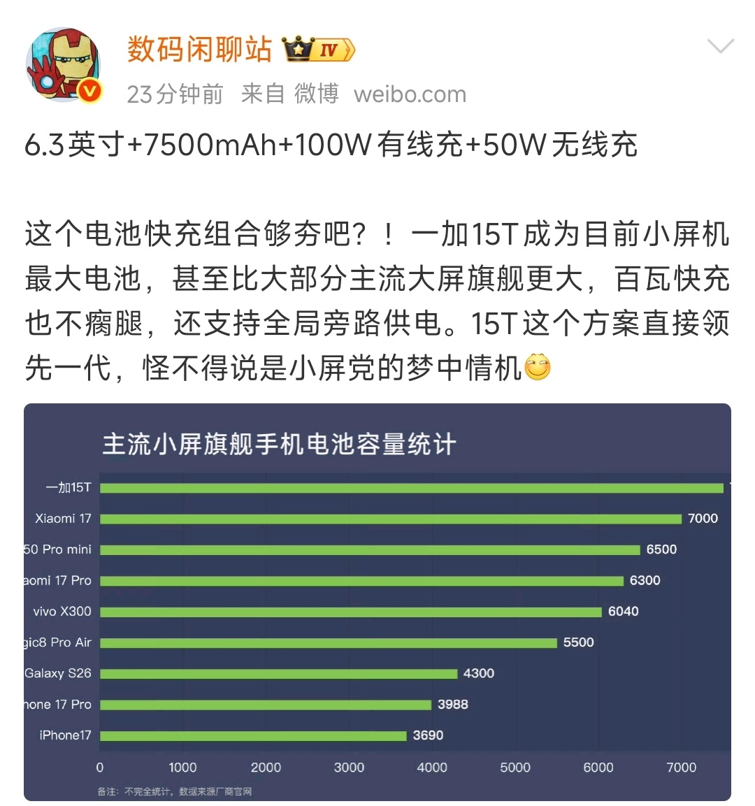 7500mAh+100w有线+50w无线!