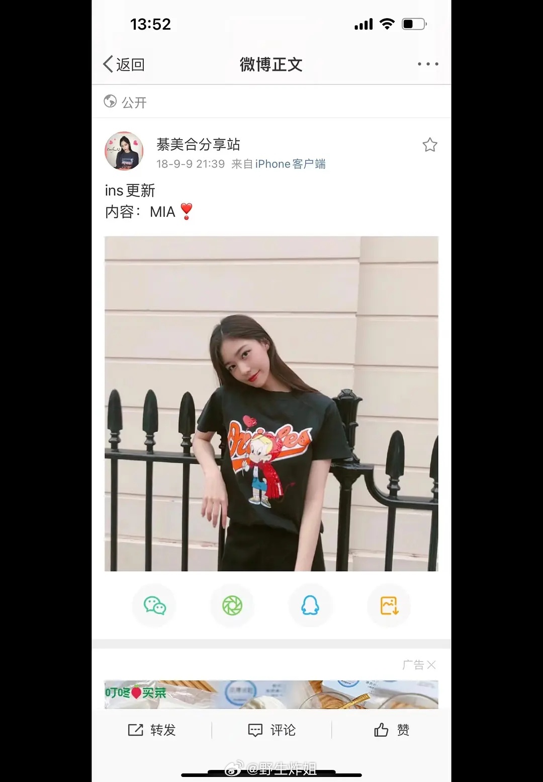 綦美合18年晒出的订制潮牌,背面的数字是21
