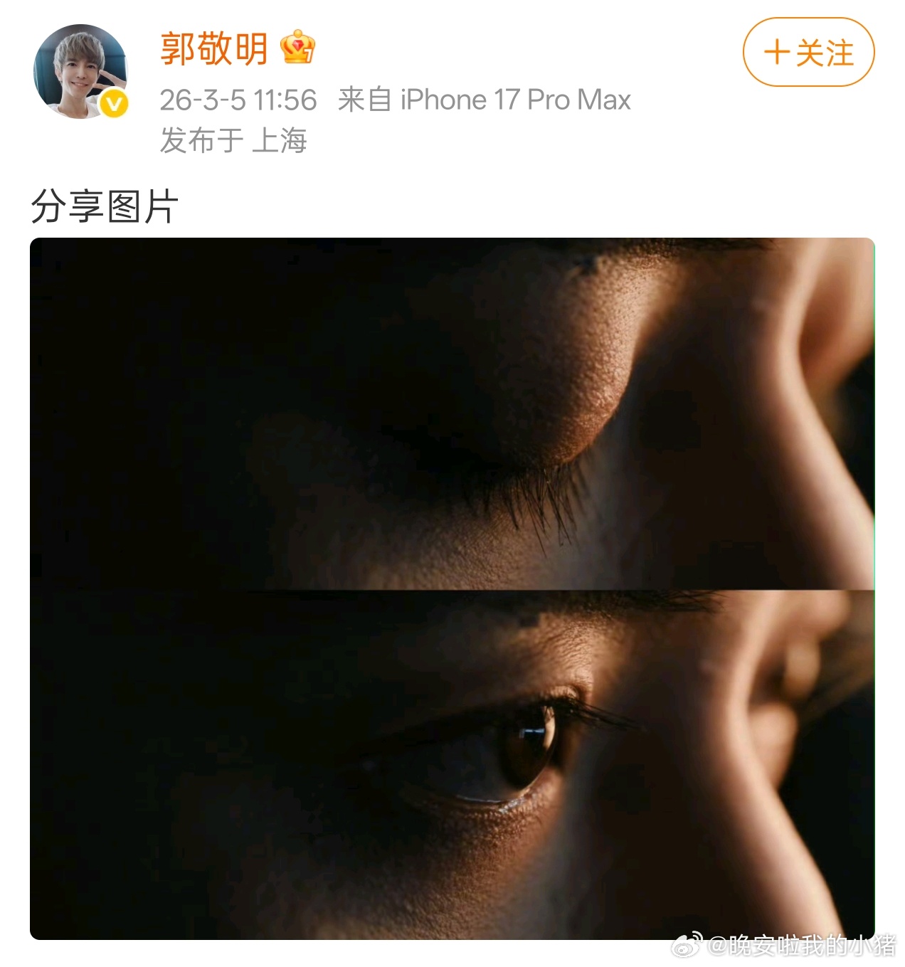 郭敬明分享图片,特殊的眉间痣这不就是邓为吗