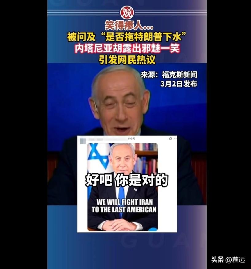 主持人问以色列总理内塔尼亚胡:联合美国对伊朗发动打击,是不是拖特朗普下水,内塔尼亚胡邪魅一笑:好吧,你是对的。 美以联合打击伊朗的行动,到今天这个熊样,笃定特朗普在背后把内塔尼亚胡祖宗八代问候了N遍。