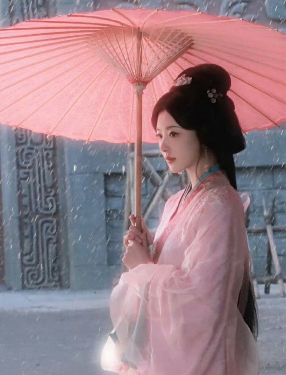 孔雪儿撑伞又出神图 谁被孔雪儿撑伞美到了!今日我为天下主,一伞嫣红遮风雨,气场直