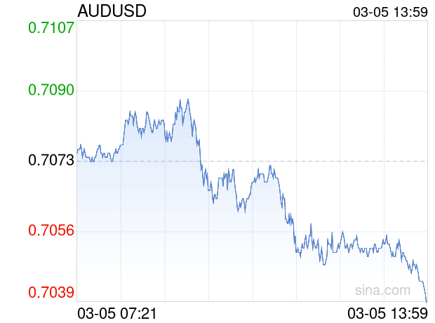 新浪外汇消息2026年03月05日,截至13时59分,外汇市场上澳元兑美元汇率跌破1澳元兑换0.7037美元。跌幅为-0.5090%