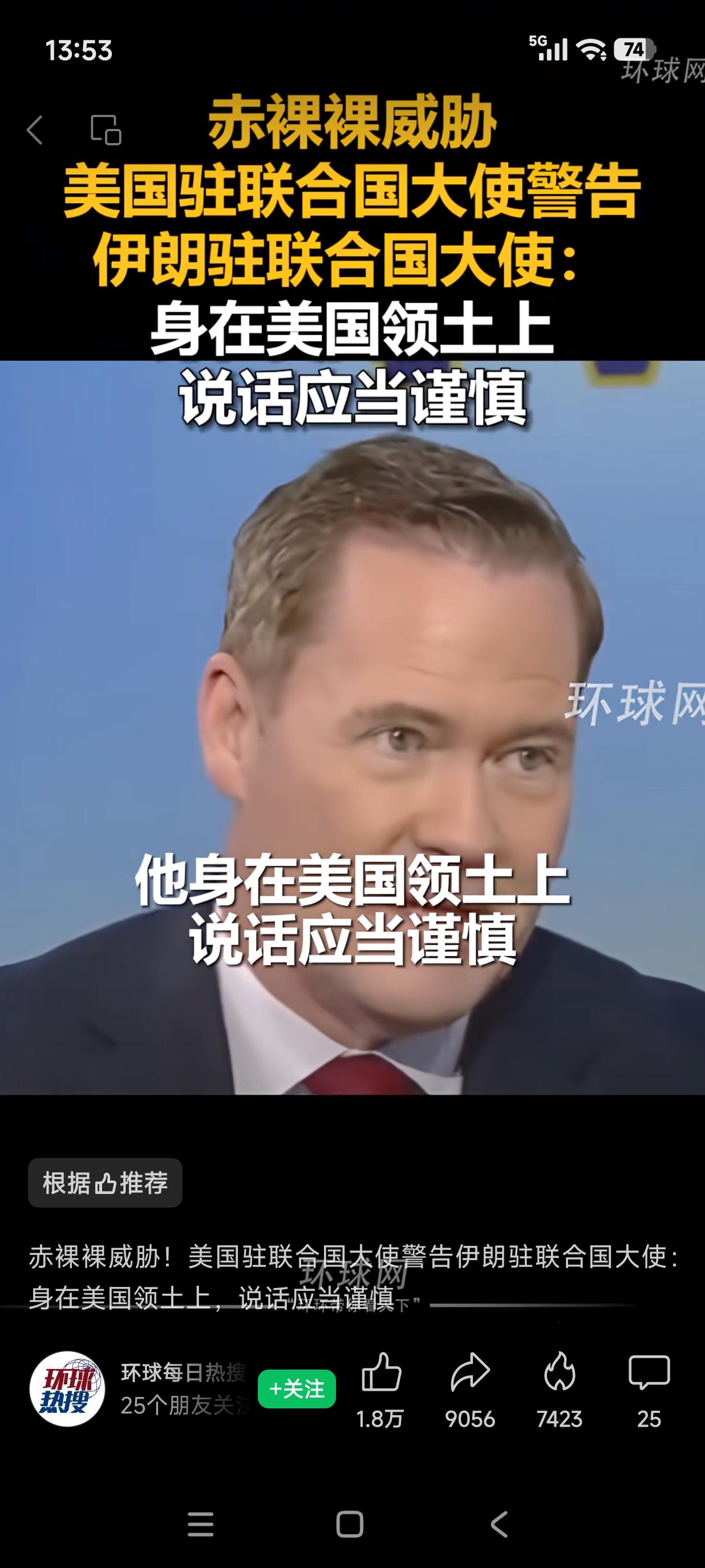 联合国应该搬家了!美国常驻联合国大使警告伊朗驻联合国大使:身在美国领土上,说话应该谨慎!说好的言论自由了?