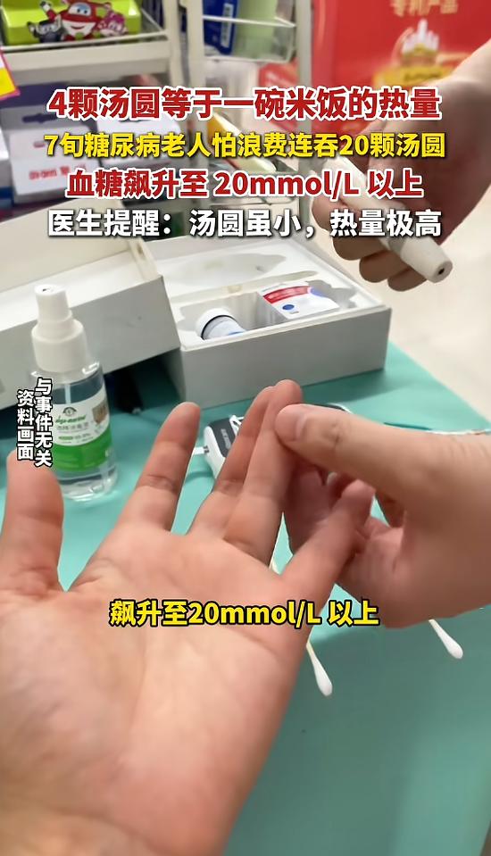 “悲剧还是发生了!”近日,浙江,一70岁老人患有糖尿病,在春节期间,怕汤圆过期浪费,竟一口气吃了20颗汤圆当早饭,结果血糖直接飙升,出现乏力,多尿急性高血糖症状,最终被直接送进医院,情况十分危急!网友:不嫌腻吗? 事情发生在浙江新华医院。 急诊室的灯光很亮,老人躺在病床上,手背上扎着针头,胰岛素和补液一点点输进身体里。 几个小时前,他还在家里厨房忙活。 春节过后,家里渐渐安静下来,孩子们上班的上班,走亲戚的走亲戚,冰箱里还剩下几袋汤圆。 保质期只剩几天,他盯着包装袋看了很久。 在他眼里,食物只要没坏,就不该被扔进垃圾桶。 年轻时过过紧日子的人,对浪费格外敏感。 他平时血糖控制得还算平稳,医生也说配合得不错。 甜食很少碰,糯米制品更是偶尔尝一口。 那天早上,他给自己找了个理由。 就吃一次,应该没什么问题。 一锅水烧开,他把20颗汤圆全部倒进锅里。 白白胖胖的汤圆在水里翻滚,看着热闹又喜庆。 他坐在餐桌前,一颗接一颗吃完,觉得不过是顿普通早餐。 糯米外皮软糯,芝麻花生馅香甜,入口顺滑。 对糖尿病患者来说,这种组合却并不友好。 糯米属于高升糖食物,吸收速度快。 馅料里糖分和油脂含量都不低。 有医生算过,4颗带馅汤圆的热量接近一碗米饭。 20颗下肚,相当于空腹吃下5碗米饭。 血糖在短时间内迅速升高。 刚开始只是觉得口干。 他连喝几杯水,嗓子依旧发涩。 没过多久,整个人发虚,腿脚发软。 厕所一趟接一趟跑,尿意频繁。 身体在通过排尿带走多余的糖分和水分。 症状持续加重,他才意识到情况不对。 家人回家看到他脸色异常,赶紧送往医院。 医生测了指尖血糖,数值超过正常范围三倍多。 这是典型的急性高血糖表现。 再拖下去,可能诱发更严重的并发症。 医护人员立即安排补液和胰岛素治疗。 经过一段时间处理,血糖慢慢回落,人也清醒过来。 消息传出后,不少人感慨,也有人疑惑,20颗汤圆真的有这么严重吗? 对于健康人来说,偶尔多吃几颗或许只是腻。 对慢性病患者而言,风险完全不同。 尤其是空腹状态下大量摄入高糖高脂食物,血糖波动会更加明显。 老人并非不知道自己有糖尿病。 他只是低估了这顿早餐的分量。 节俭是一种习惯,也是一代人的生活印记。 在他们看来,把还能吃的食物丢掉,比多吃几口更难接受。 类似的矛盾在很多家庭都存在。 子女担心健康,老人担心浪费。 有医生建议,购买节日食品时选择小包装,避免剩余。 糖尿病患者如果想尝鲜,可以把量分散到几次少量食用,并配合监测血糖。 饮食管理并不意味着完全禁止,而是控制总量和节奏。 这位老人经过治疗已经脱离危险。 家人把剩下的汤圆分给邻居和亲友。 厨房恢复了平静。 一顿看似普通的早餐,让全家人都上了一课。 食物值得珍惜,身体同样珍贵。 比起省下几袋汤圆,平安无事更让人安心。 信息来源:《4颗汤圆=1碗饭?有人一口气吃了20颗,被紧急送医!快转发给家人》福建卫生报