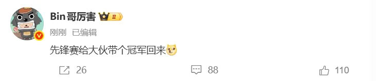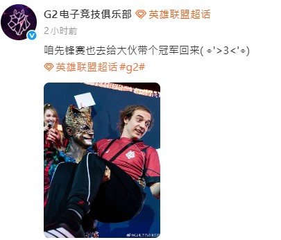 全世界都在说Bin道话,昨日 Bin 刚放话要给 LPL 带个先锋赛冠军回来,结果 G2 官博光速跟进,直接复制黏贴:“咱先锋赛也去给大伙带个冠军回来”。