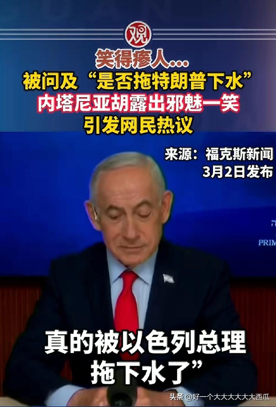 内塔尼亚胡连笑起来都像魔鬼! 最近在被问到他“是否拖特朗普下水”的时候, 内塔尼亚胡露出邪魅的一笑, 有网友看到这笑容说内塔尼亚胡露出了吸血鬼一般的牙齿! 当他听到这个问题时这种笑容, 其实已经表明他确实成功把美国拖入到了中东战场上面来, 内塔尼亚胡轻轻一勾, 特朗普头脑一发热就上当了。