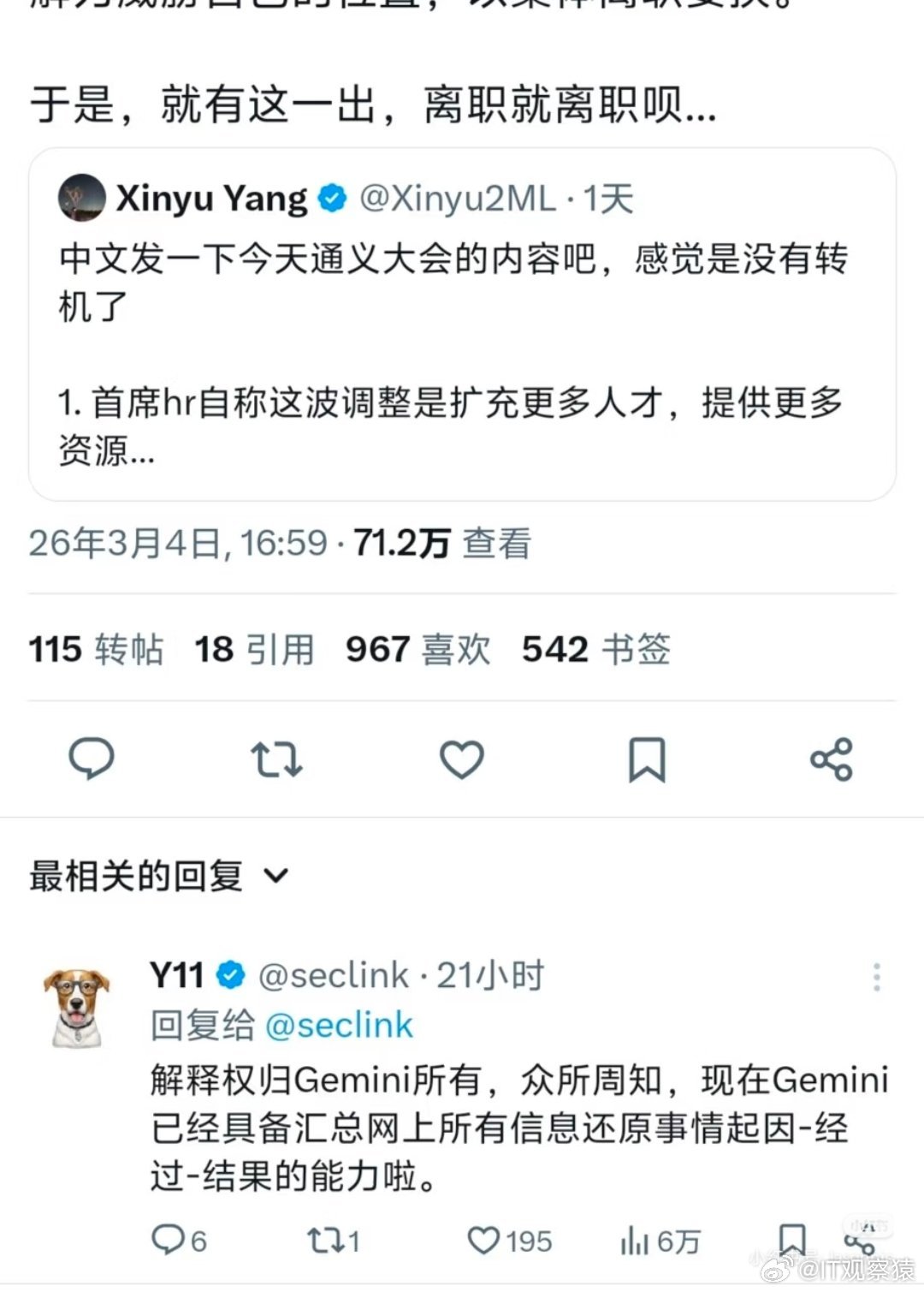 关于林俊旸离职的另一种说法,一家之言,仅供参考。