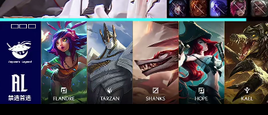 AL选用:Flandre鳄鱼、Tarzan狼狗、Shanks加里奥、Hope女枪、Kael妮蔻