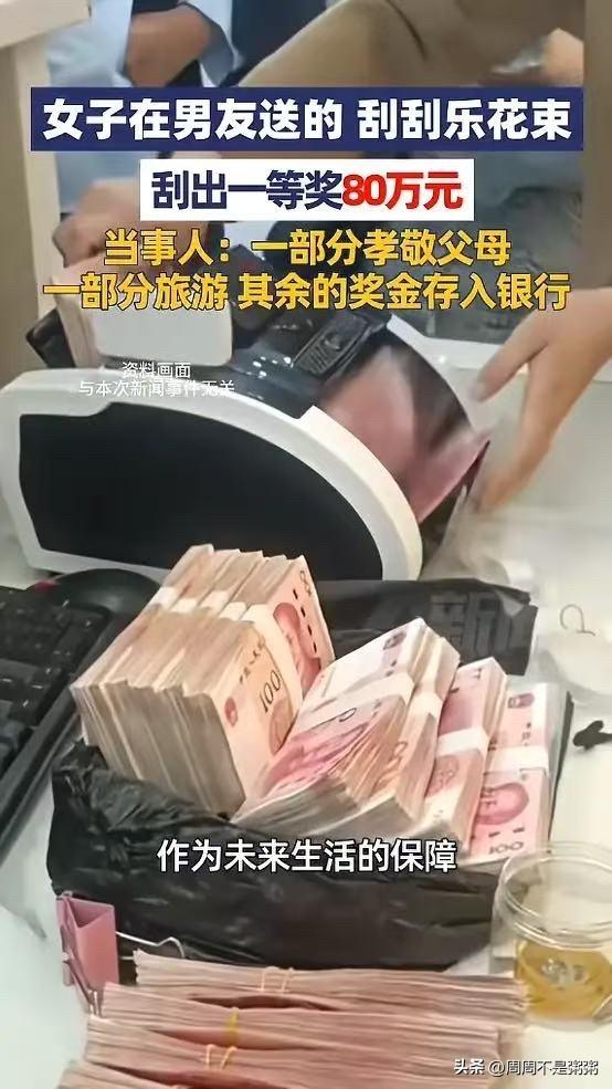 “这就是命啊!”近日,广东佛山,一女子生日时,收到男朋友为她准备的刮刮乐花束,没想到竟刮出80万一等奖!女子十分开心,决定拿一部分奖金孝敬父母,一部分旅游,其余的存进银行,作为未来生活的保障!网友:羡慕哭了! 2026年1月,佛山顺德的李女士过生日那天,男朋友抱来一束特别的花。不是玫瑰,不是满天星,是几十张“多喜乐”刮刮乐彩票扎成的花束。红彤彤的票面,看着就喜庆。 李女士一张张刮开,刮到其中一张,手突然停住了。眼睛盯着票面,看了又看。一等奖,80万。她愣了好几秒,才敢相信这是真的。 男朋友凑过来一看,也傻眼了。两个人你看看我,我看看你,然后抱在一起又笑又跳。生日蛋糕还没切,先切出个天大的惊喜。这份礼物,送得太值了。 这事儿是佛山市福彩中心确认的,发生在44131060福彩销售站点。李女士后来在男朋友陪同下去办了兑奖手续。面对镜头,她笑得特别甜。 她说,自己和男朋友一直很注重仪式感。每逢生日、纪念日这些重要时刻,刮刮乐花束都是他们表达心意的首选。刮开每张彩票时的期待,中奖时的惊喜,没中就当支持公益,这份心意比什么都珍贵。 “多喜乐”这款刮刮乐,票面是国潮风设计。红底配上灯笼、锦鲤,还有可爱的卡通形象,年轻人特别喜欢。20元面值的最高奖金就是80万元,玩法简单,刮出奖金金额就能兑奖。 对于这笔意外之财,李女士想得很清楚。一部分孝敬父母,感谢他们的养育之恩。一部分用来旅游,和男朋友一起看看世界。剩下的,全部存进银行,给未来生活添一份保障。 没有头脑发热乱花钱,也没有藏着掖着。该感恩的感恩,该享受的享受,该储备的储备。80万不是小数目,能这样冷静安排,说明这姑娘心里有杆秤。 刮刮乐花束这几年确实火。把彩票和花艺结合,既有创意又有心意。每次刮开都是未知,中奖是惊喜,没中也是份祝福。票背后关于公益福彩的介绍,让这份浪漫多了层温暖的意义。 我有个朋友,去年生日也收到男友送的刮刮乐花束。她刮出两百多块钱,开心得请我们吃了顿火锅。她说,中的不是钱,是那份被放在心上、愿意花心思制造惊喜的感觉。 李女士这份运气,真是万里挑一。但比运气更难得的,是她中奖后的态度。不忘父母,不忘生活,不忘未来。这份清醒,比80万更珍贵。 生活有时候就是这样,不经意间给你一个大惊喜。但惊喜过后,日子还得自己过。能把意外之财变成生活的助力,而不是负担,这才是真正的智慧。 各位读者你们怎么看?欢迎在评论区讨论。
