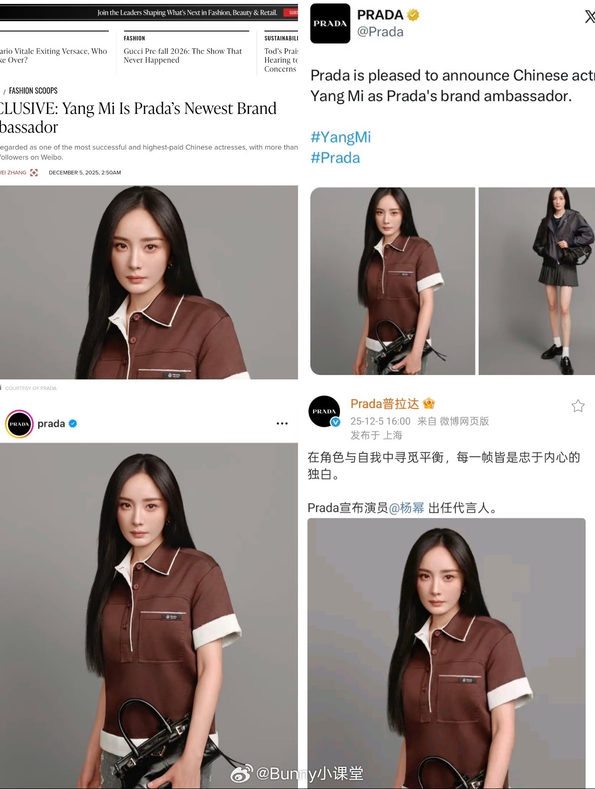 Prada代言人杨幂 海外地广不完全汇总,网友偶遇的杨幂Prada地广海报!篇幅