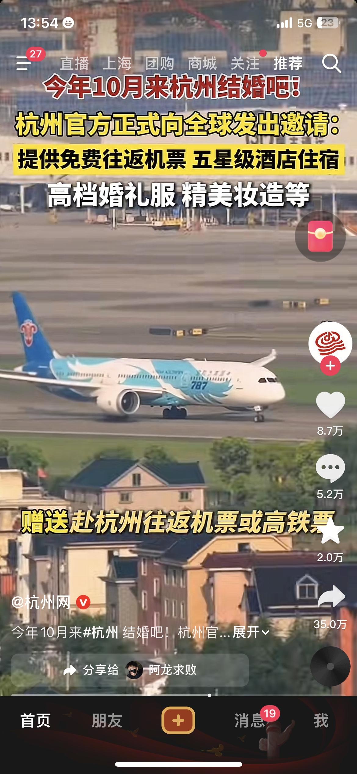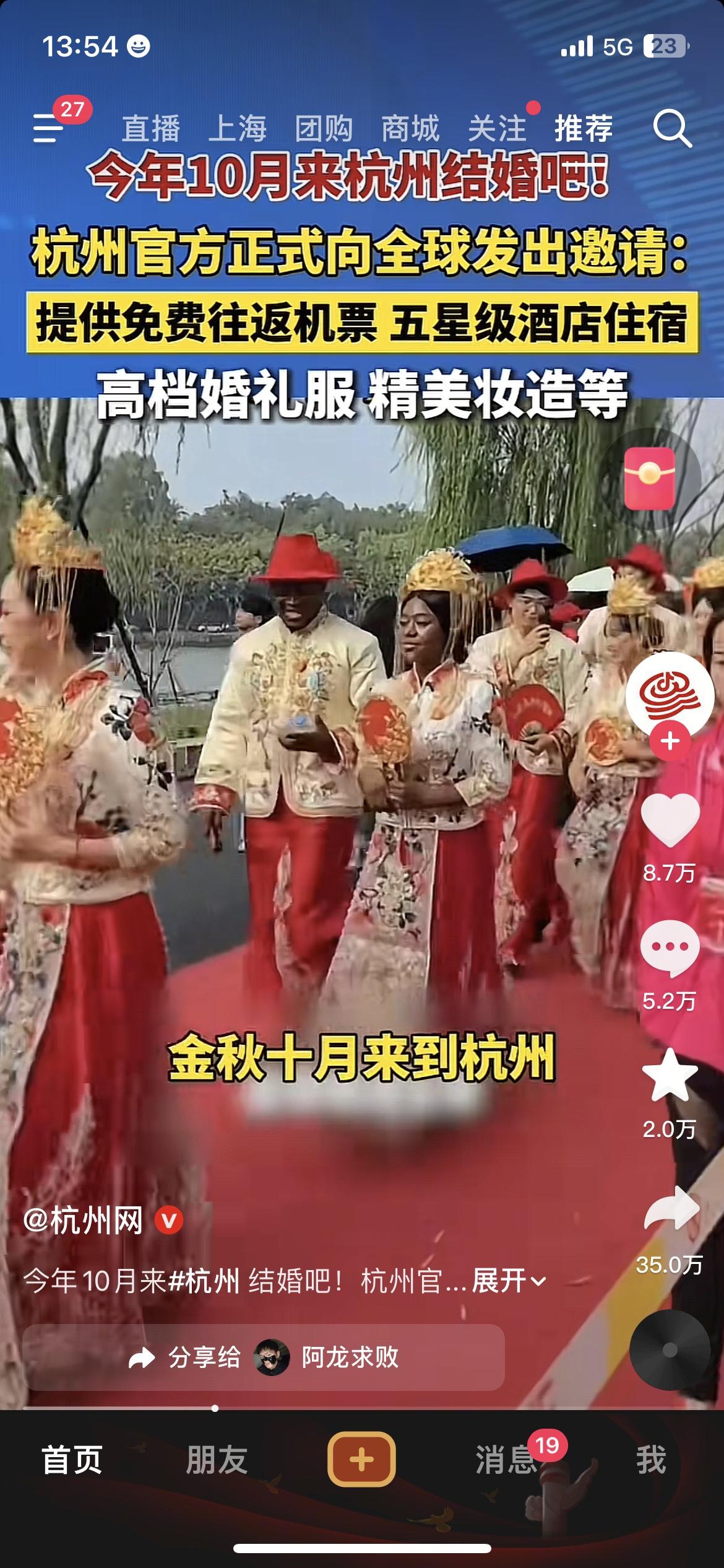 免费机票+五星酒店+高档婚服!杭州向全球发婚礼邀请,这也太宠了! 杭州这次真的玩大了!官方正式向全球发出邀请:今年10月来杭州结婚,不仅提供免费往返机票或高铁票,还包五星级酒店住宿、高档婚礼服和精美妆造。 我刷到视频里,一对对中外新人穿着中式婚服走在西湖边,真的太有氛围感了。说实话,我看完都想拉着对象去凑个热闹。 这不仅是一场婚礼,更是杭州向世界展示自己的绝佳机会。既能让新人留下难忘回忆,又能带动旅游、婚庆等产业,一举多得。 杭州全球婚礼 免费机票 城市营销 爱情之都杭州结婚仪式