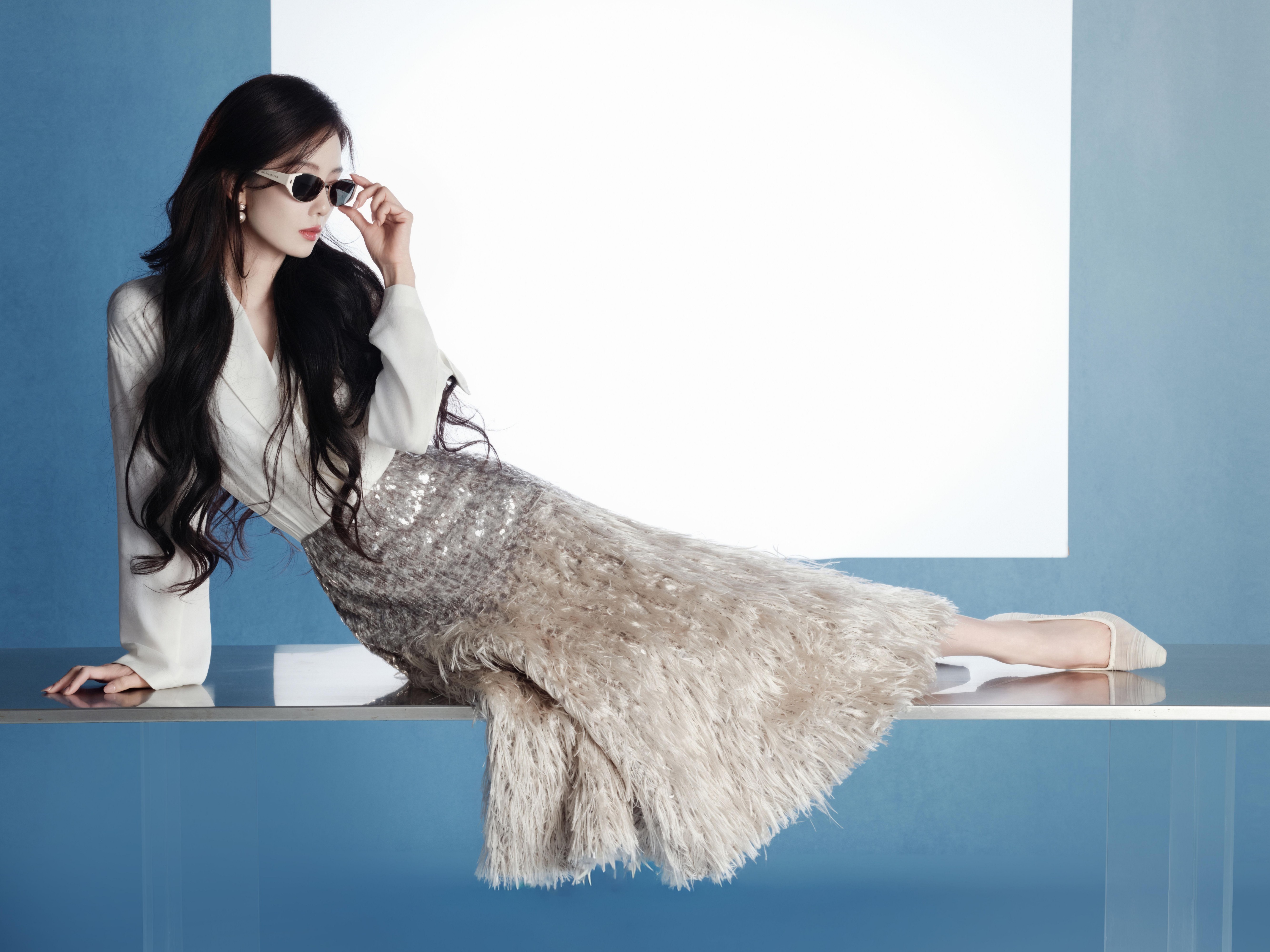 刘诗诗身穿Brunello Cucinelli 2026春夏渐变羽毛裙出席海伦凯勒直播