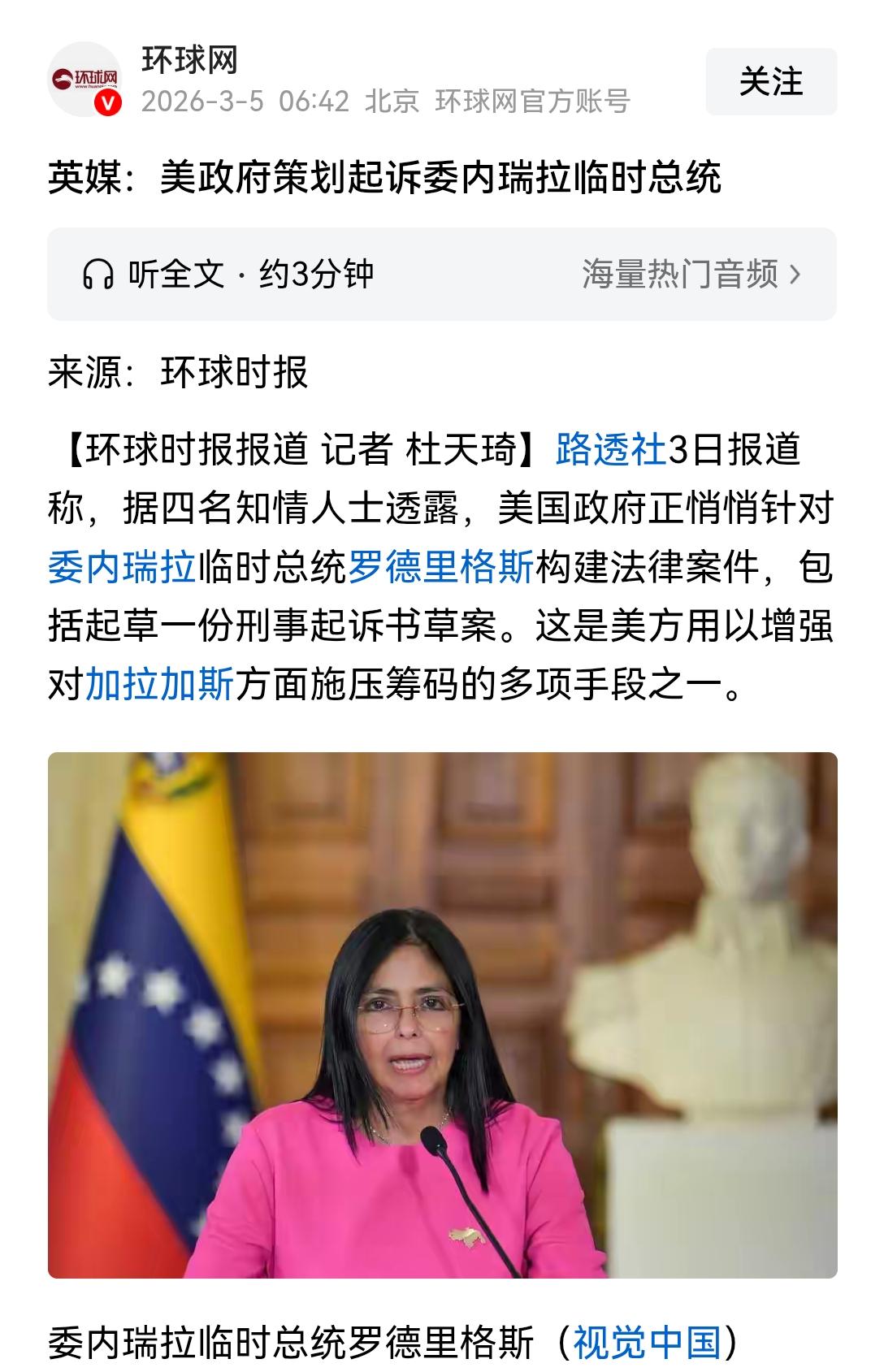 [吃瓜群众]罗德里格斯,现在是公开要“摒弃仇恨”,和美国“妥协”,被质疑是“内鬼”“投降派”[思考]但有一说一,其他人坐在她那个位置,真有更好的办法吗?查韦斯留下四个大咖,两个在美国(冷知识:马杜罗“夫人”也是铁腕人物,号称“第一战士”),另两个分别掌握军队和内务部,然后把“背锅”的事,“依法”扣到她头上,“刀”却并未握在她手上…外患内忧,生民求活,不过勉力弥缝而已[可怜]更惨的是——如今川普的精神状态…一言难尽,昨天表扬、今天起诉,就算“冯令公”再世,估计都要挨两刀[吐血]