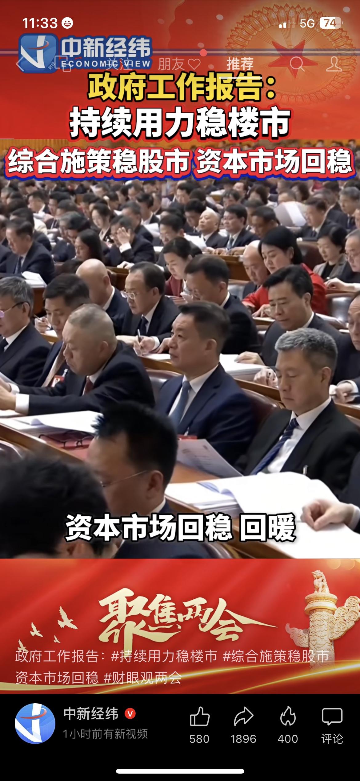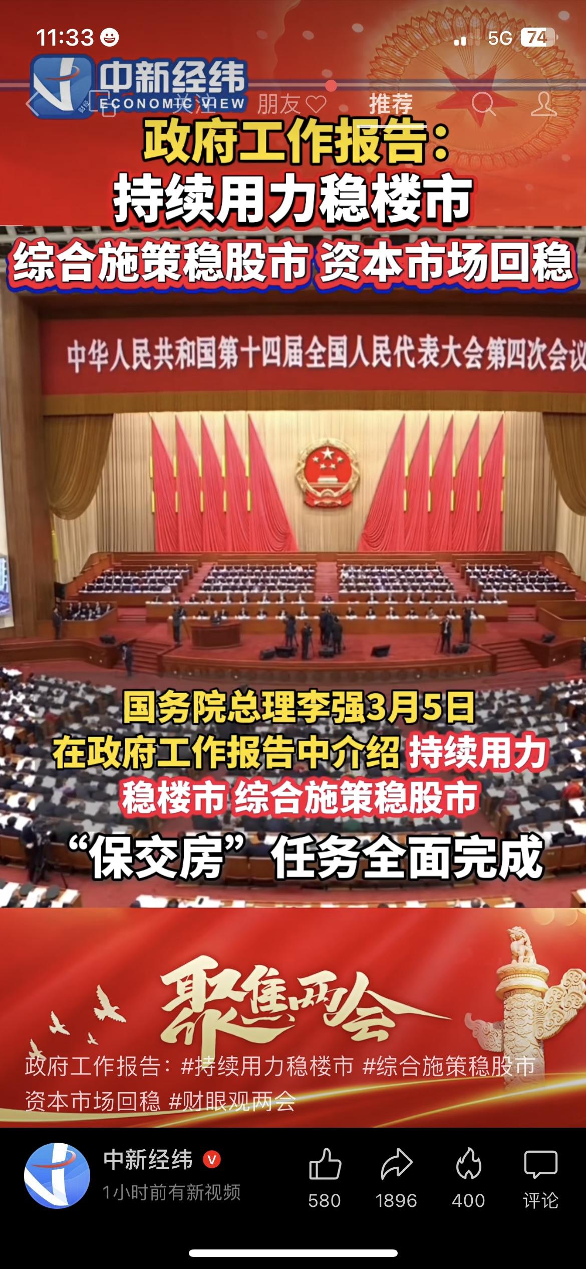重磅!政府工作报告定调:持续用力稳楼市,综合施策稳股市 今天的政府工作报告,直接给楼市和股市吃了定心丸:持续用力稳楼市,综合施策稳股市,资本市场回稳,“保交楼”任务全面完成。 我妈早上看到新闻,第一时间发微信问我:“是不是房价要涨了?我那套老破小能不能出手了?”其实,这次报告的核心不是“涨”,而是“稳”。 说白了,就是让楼市别再大起大落,让股市别再割韭菜,让咱普通人的资产能更安全。 市场有风险,投资需谨慎,不构成任何投资建议。 政府工作报告 稳楼市 稳股市 保交楼楼市实情