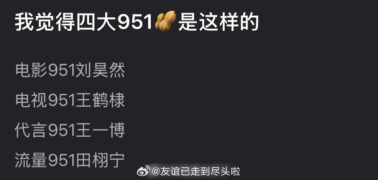 四大95生,赞同吗?电影951刘昊然电视951王鹤棣代言951王一博流量951田栩宁