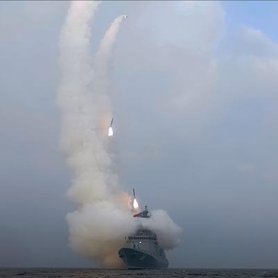 连射5枚对陆攻击巡航导弹,场面震撼。“崔贤”号驱逐舰进行作战执行能力评估。