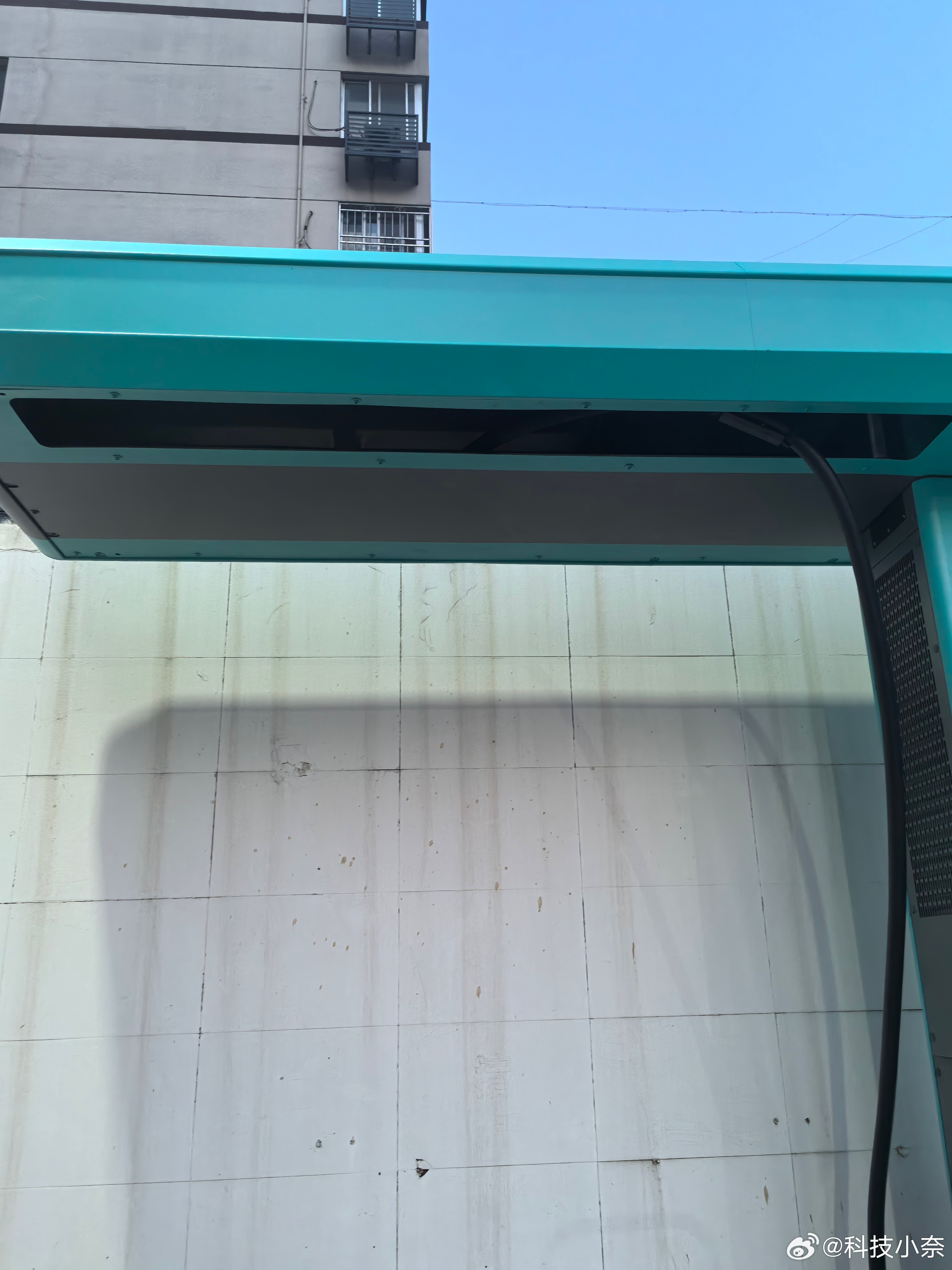 刚跟妍总下楼吃饭,路过一个停车场转头一看,诶!这不是比亚迪的新闪充桩嘛,还有师傅在旁边整调试呢,这个新样式确实显眼,辨识度杠杠的。