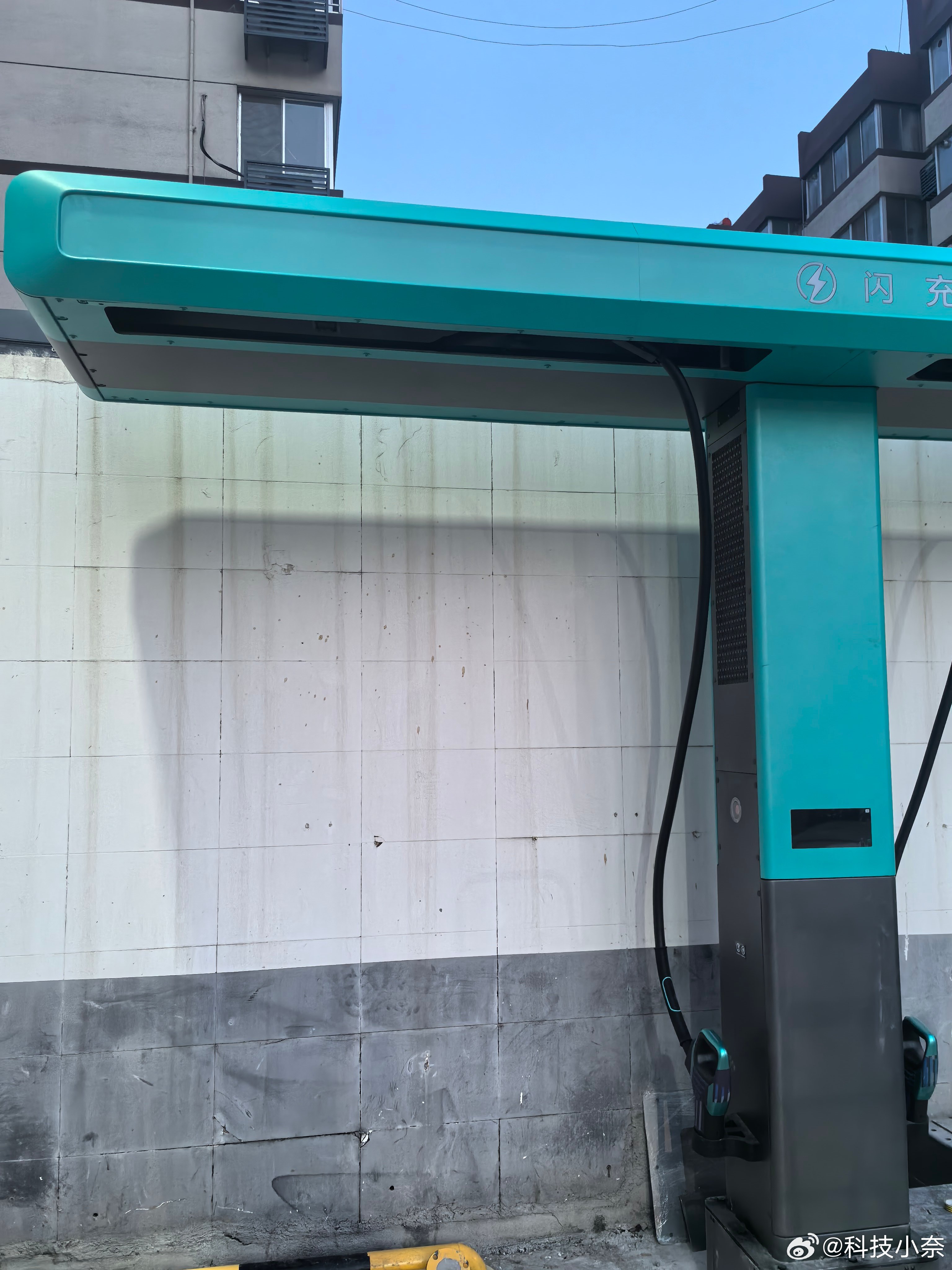 刚跟妍总下楼吃饭,路过一个停车场转头一看,诶!这不是比亚迪的新闪充桩嘛,还有师傅