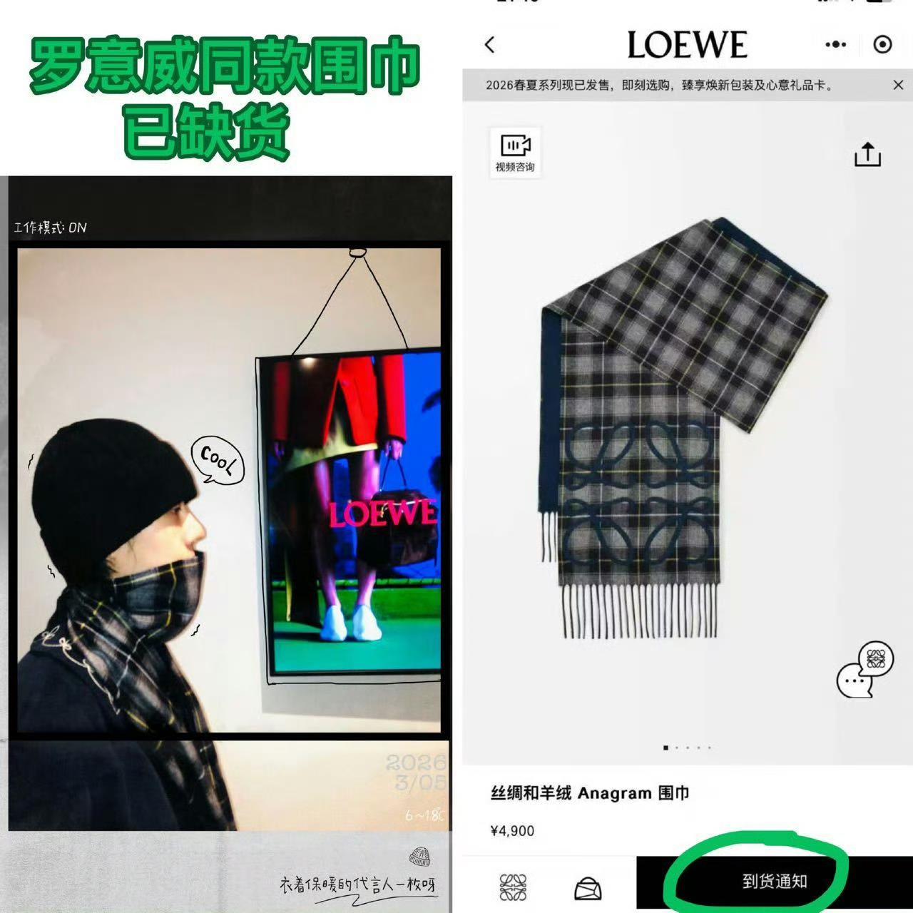 大秀还没开始,王一博戴的这款罗意威围巾售罄了!粉丝这实力