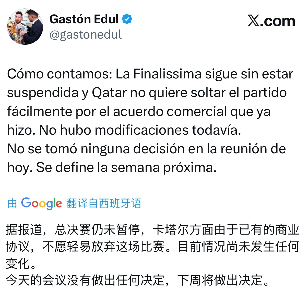 Gaston Edul|卡塔尔也不愿轻易放弃这场比赛,最终结果将于下周决定。梅西