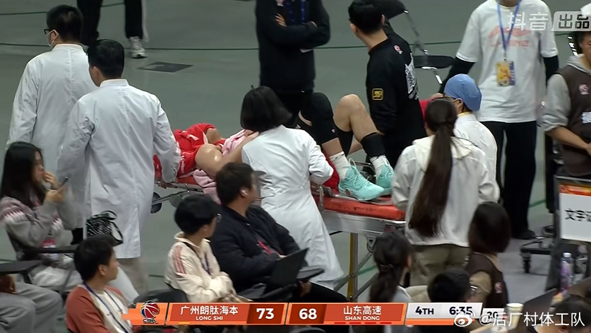 郭艾伦被担架抬出场郭艾伦膝盖受伤