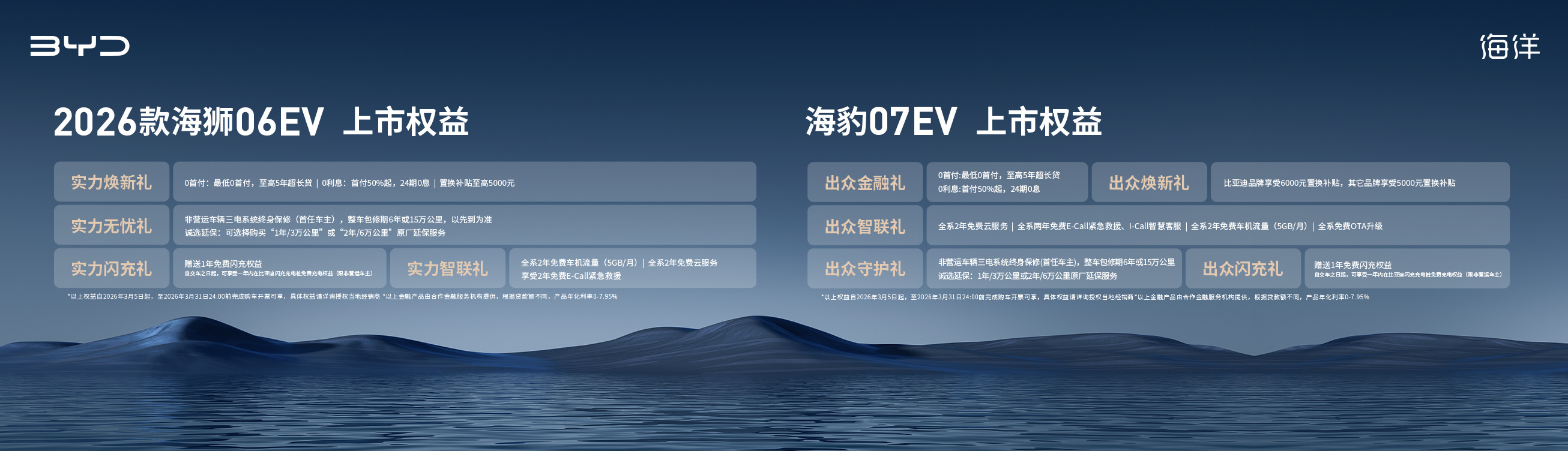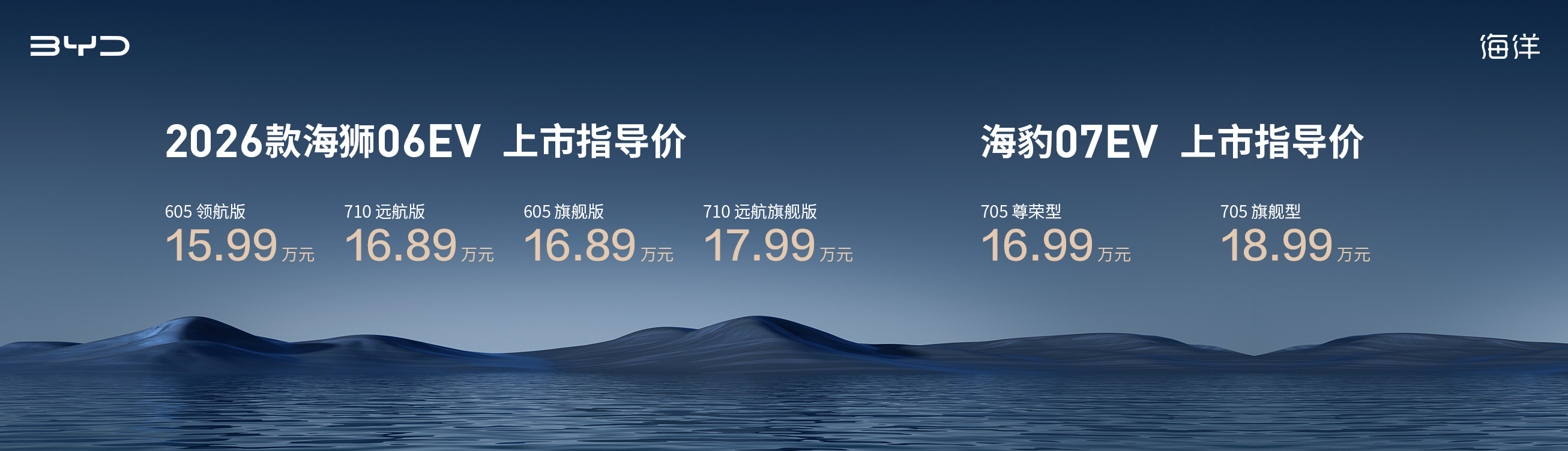跟随第二代刀片电池和闪充技术的发布,海洋网也带来了两款新车:2026款海狮06EV,售价15.99万元-17.99万元海豹07EV,售价16.99万元-18.99万元除了普惠的免费一年闪充权益,整体的配置,续航都有升级。