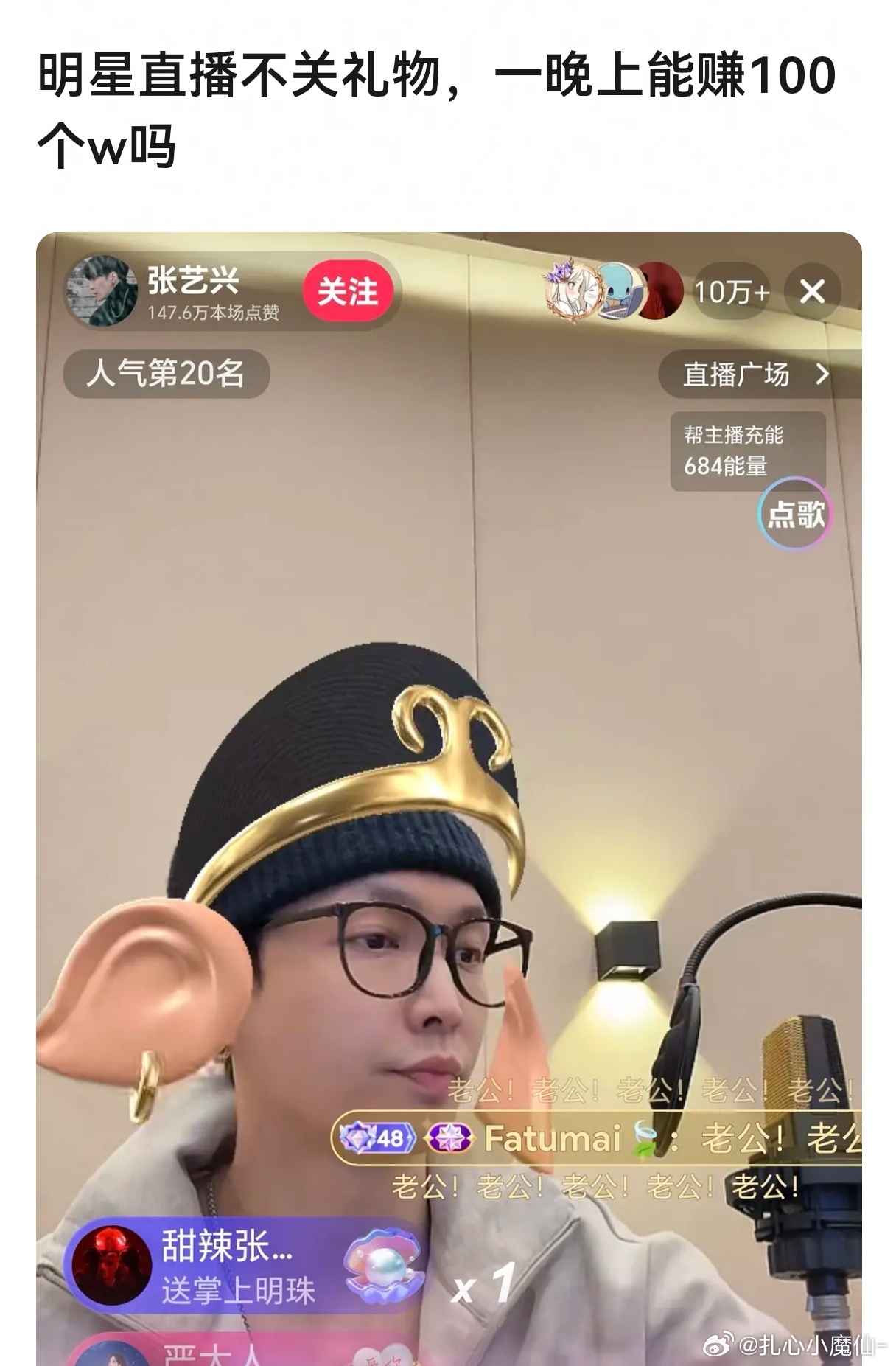 张艺兴直播没关礼物在瓣刷屏了