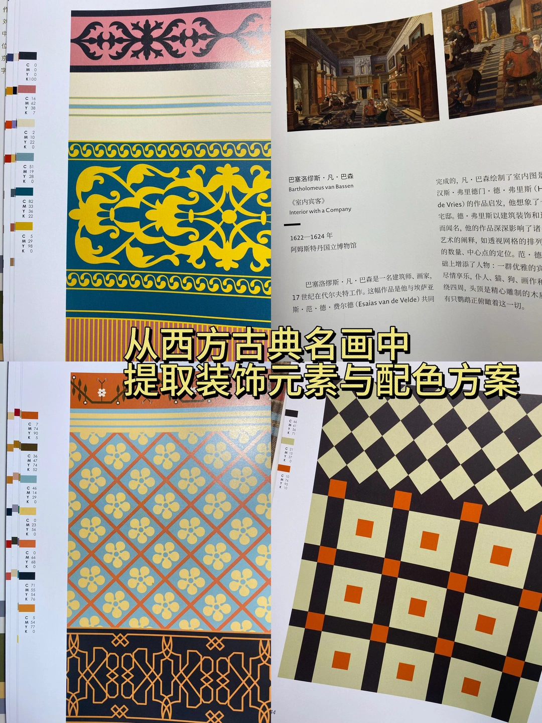 • 从75幅西方古典名画里抠出了83套可直接用的图案和CMYK色值
