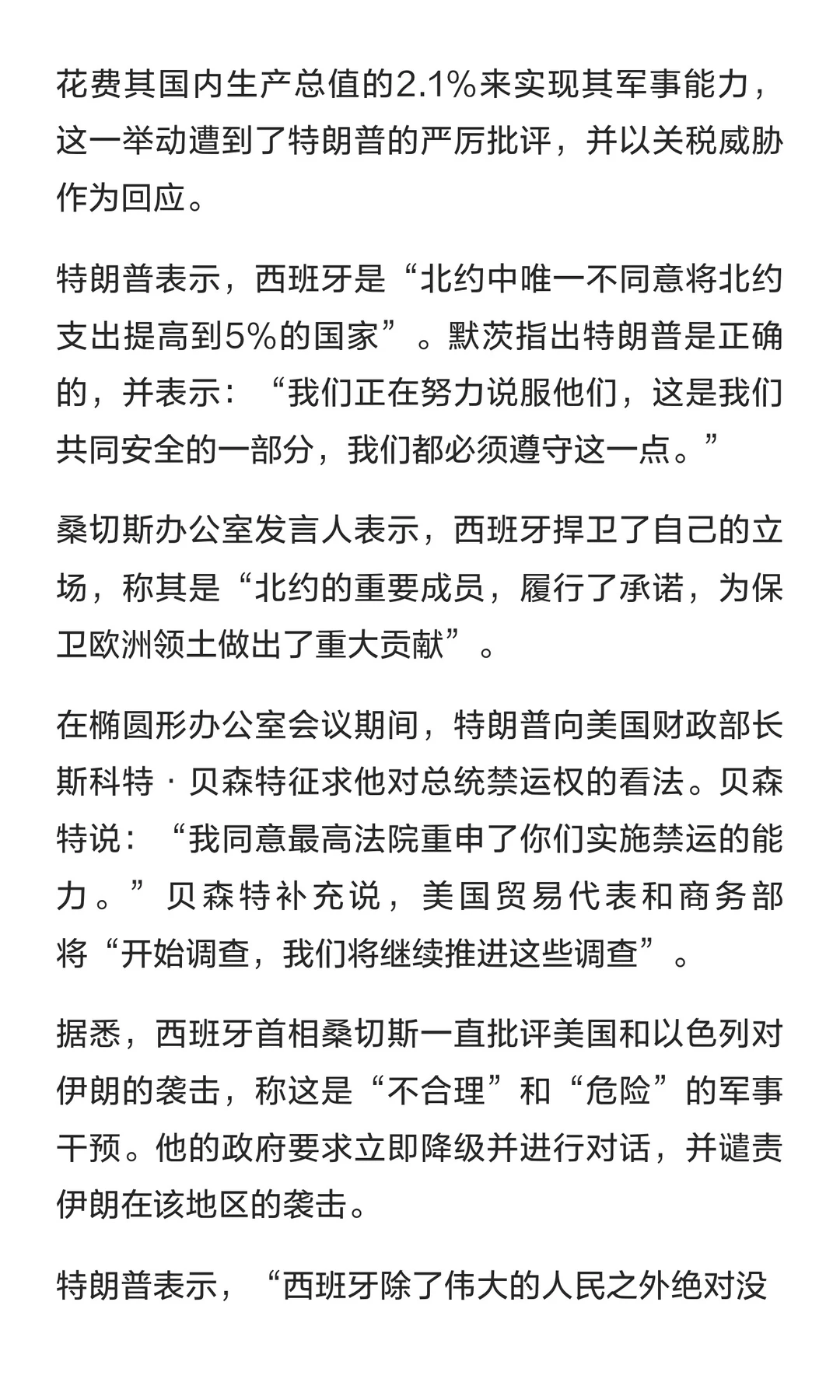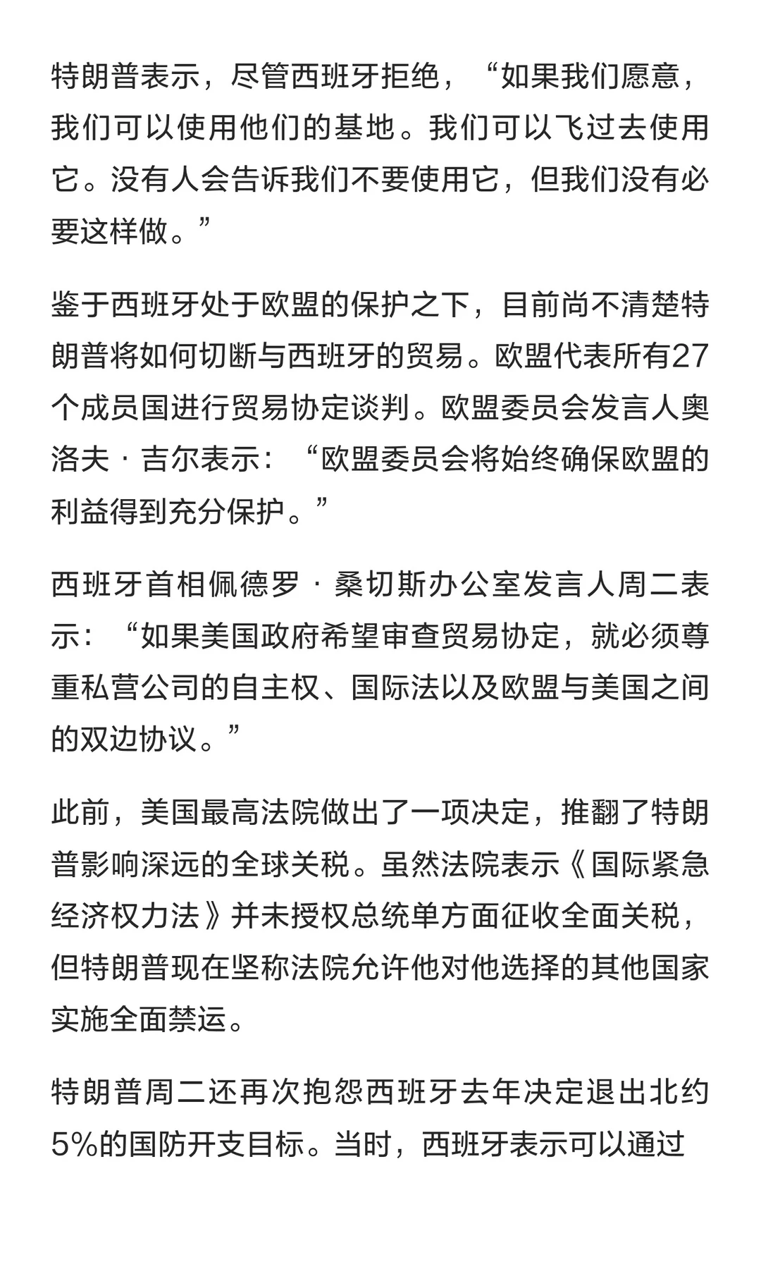 特朗普:切断与西班牙贸易